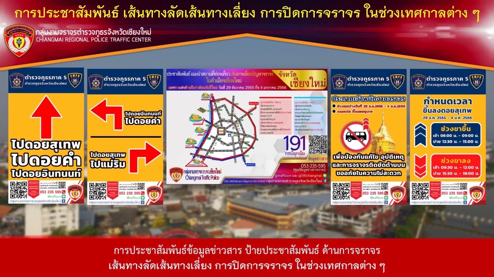 แนะนำเส้นทางช่วง7วันขับขี่ปลอดภัยเพื่อ ให้นักท่องเที่ยวในการใช้เส้นทางที่สะดวก-รวดเร็ว-ปลอดภัย ในการเดินทางมุ่งหน้า ไปยังสถานที่ท่องเที่ยวสำคัญในตัวเมืองเชียงใหม่เพื่อหลีกเลี่ยงปัญหาการจราจรในตัวเมืองร่วมกันและป้องกันการเกิดอุบัติเหตุได้เป็นอย่างดีช่วงเทศกาลปีใหม่2566นี้