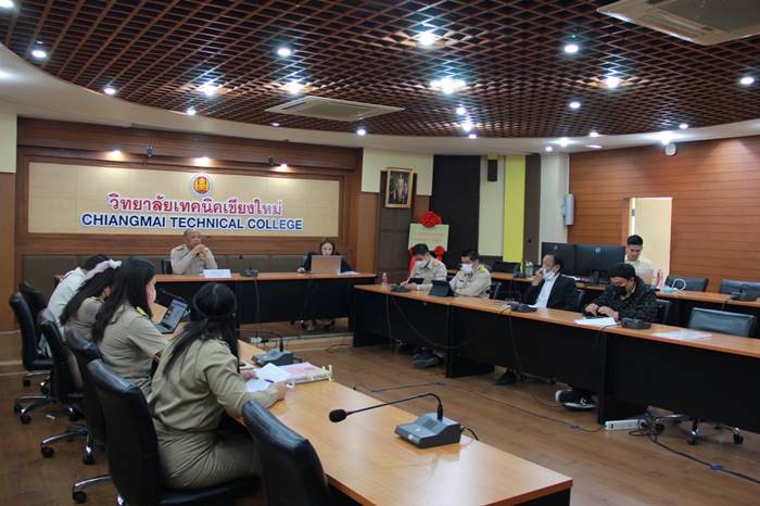 วันที่ 26 ธันวาคม 2565 ท่านผู้อำนวยการ วัชรพงศ์ ฝั้นติ๊บ ผู้อำนวยการวิทยาลัยเทคนิคเชียงใหม่ ประธานกรรมการอาชีวศึกษาจังหวัดเชียงใหม่ พร้อมด้วย นายบุญรัตน์ สว่างแจ้ง รองผู้อำนวยการฝ่ายพัฒนากิจการนักเรียนนักศึกษา นายธีรวุธ ยะอูป รองผู้อำนวยการฝ่ายบริหารฯ นาย ชรันต์ยุทธ์ บุญยง รองผู้อำนวยการฝ่ายวิชาการ และคณะครูผู้ที่รับผิดชอบโครงการ เข้าร่วมการสัมภาษณ์เชิงลึก ในโครงการทุนนวัตกรรมสายอาชีพชั้นสูง ปี 2566 กับกองทุนเพื่อความเสมอภาคทางการศึกษา (กสศ.) กับคณะกรรมการและผู้ทรงคุณวุฒิกองทุนเพื่อความเสมอภาคทางการศึกษา ณ ห้องประชุมสุทธาสิริ วิทยาลัยเทคนิคเชียงใหม่