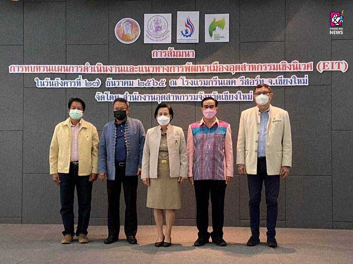 วันที่ 27 ธันวาคม 2565 นายสมชาย ทองคำคูณ รองประธานกรรมการหอการค้าจังหวัดเชียงใหม่ เข้าร่วมการสัมมนาการทบทวนแผนการดำเนินงาน และแนวทางการพัฒนาเมืองอุตสาหกรรมเชิงนิเวศ (EIT) โดยนางพัชรี ใบยา อุตสาหกรรมจังหวัดเชียงใหม่ เป็นประธานเปิดการสัมมนาดังกล่าว ณ ห้องประชุมพลอยไพลิน โรงแรมกรีนเลค รีสอร์ท จังหวัดเชียงใหม่