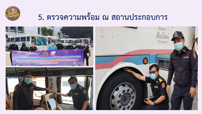 ทั้ง 137 แห่ง ในจังหวัดเชียงใหม่ นอกจากนี้ ยังมีการออกตรวจจับความเร็วของรถสาธารณะ และการประชุมซักซ้อมผู้ประกอบการขนส่งสาธารณะ โดยได้ขอความร่วมมือผู้ประกอบการขนส่งสินค้า หลีกเลี่ยงการใช้รถในช่วงเทศกาล เพื่อช่วยให้ประชาชนที่ขับรถบนท้องถนนขับได้สะดวกสบายมากขึ้น พร้อมทั้งขอให้มีการตรวจความพร้อมของรถและพนักงานขับรถของสถานประกอบการ เพื่อความปลอดภัยของผู้ที่มาใช้บริการ ไม่ว่าจะเป็นตรวจสภาพรถ ตรวจแอลกอฮอล์พนักงานขับรถ รวมถึงอุปกรณ์ด้านความปลอดภัยประจำรถ ทั้งนี้ หากประชาชนพบเห็นรถโดยสารสาธารณะมีพฤติกรรมการขับขี่ที่ไม่ปลอดภัย สามารถแจ้งสายด่วน 1584 ตลอด 24 ชั่วโมง