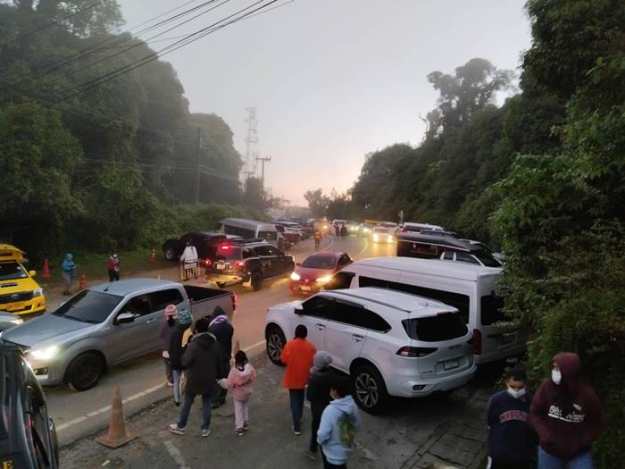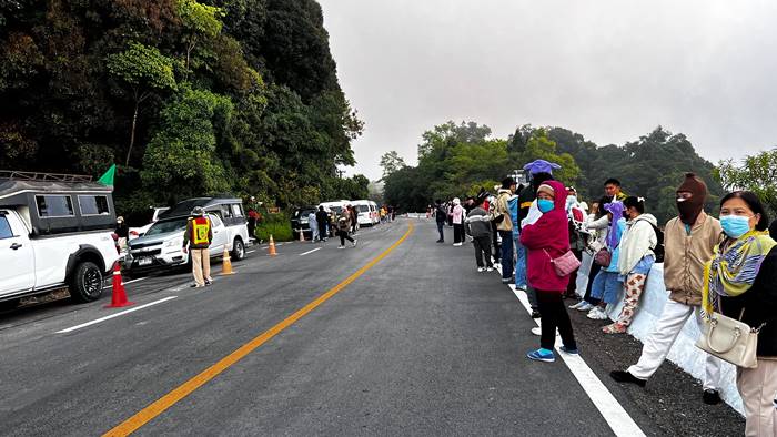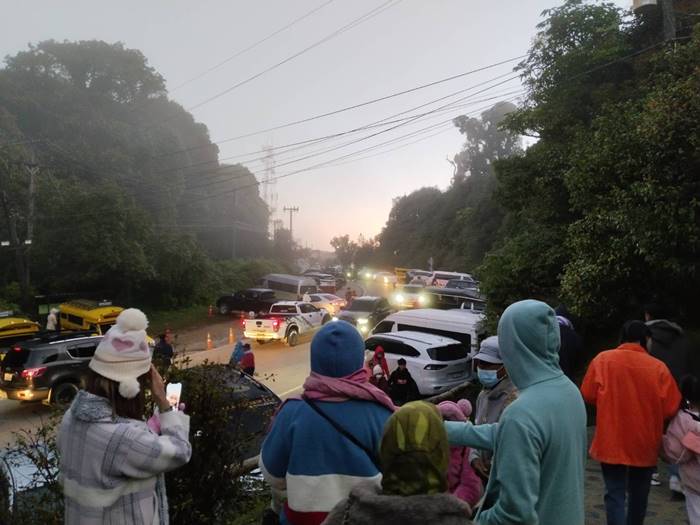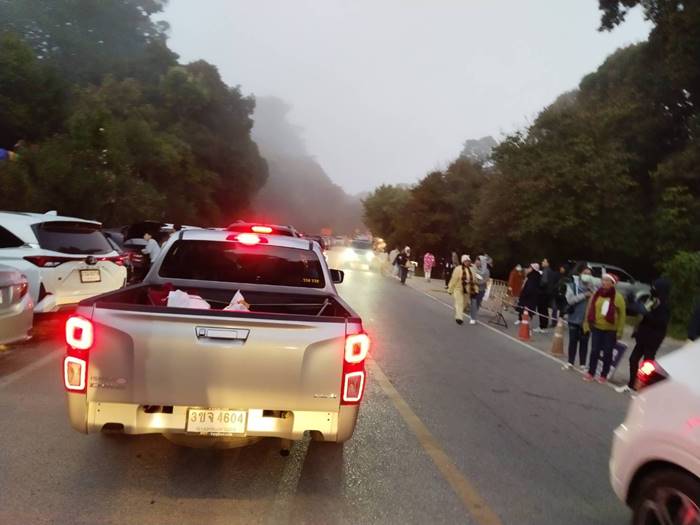 นักท่องเที่ยวคึกคัก สัมผัสอากาศหนาวที่ดอยอินทนนท์ ทะลุหมื่น อากาศหนาวยะเยือก 5 องศา การจราจรบนดอยอินทนนท์ หนาแน่น เจ้าหน้าที่ทำงานเต็มที่