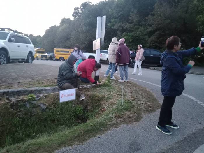 นอกจากนี้ยังเกิดเหมยขาบที่ยอดดอย ข้างทางด้วย นักท่องเที่ยวได้สัมผัสอากาศหนาว ชมแสงอาทิตย์ยามเช้าวันใหม่ปีใหม่ อุณหภูมิเช้านี้ที่ยอดดอยวัดได้ 3 องศา ที่กิ่วแม่ปานวัดได้ 5 องศา ที่ทำการอุทยานวัดได้ 8 องศา สถิตินักท่องเที่ยวที่เข้ามาในเขตอุทยานดอยอินทนนท์เมื่อวันที่ 31 ธค 65 ที่ผ่านมา คนไทย 14,106 คน ชาวต่างชาติ 851 คน รวม 14,957 คน ยานพาหนะ 5,696 คัน การจราจรหนาแน่น ทางเจ้าหน้าที่อำนวยความสะดวกอย่างเต็มที่ และเช้าวันนี้ทางอุทยาน ยังจัดให้มีกิจกรรมทำบุญตักบาตรในช่วงเช้า มีนักท่องเที่ยวมาทำบุญตักบาตรกันอย่างคึกคัก