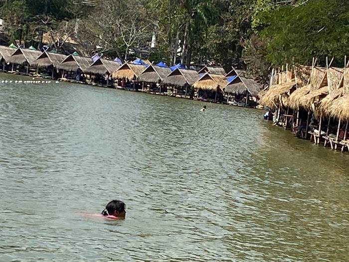 เมื่อวันที่ 1 ม.ค. 2566 ที่ห้วยตึงเฒ่า แหล่งท่องเที่ยวชื่อดังตั้งอยู่ชานเมืองเชียงใหม่ อ.แมริม ไม่น้อยหน้าสถานที่ท่องเที่ยวอื่นๆ มีนักที่ยวจำนวนมาก เข้ามาสัมผัสบรรยากาศธรรมชาติอากาศร่มรื่นเย็นสบาย ซุ้มร้านอาหารริมน้ำ และบริเวณที่จอดรถแน่นถนัดไปด้วยนักท่องเที่ยว และเด็กๆ ไม่กลัวหนาวต่างลงเล่นน้ำกันอย่างสนุกสนาน