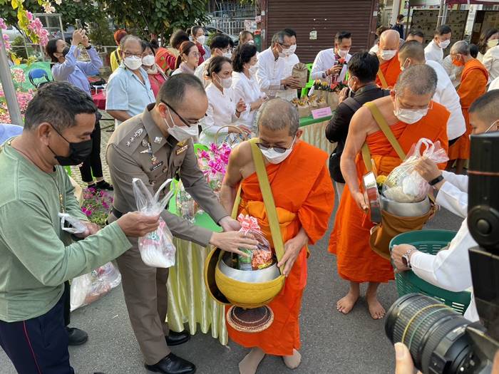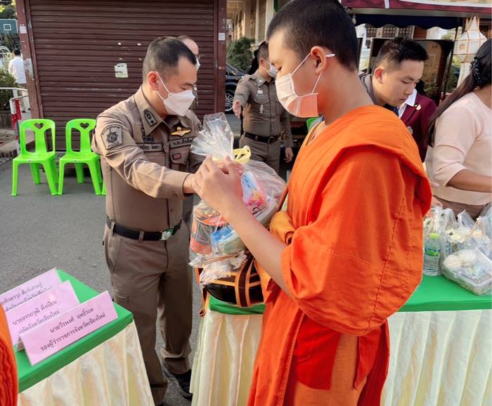 สภ.เมืองเชียงใหม่ร่วมทำบุญตักบาตร ข้าวสาร อาหารแห้ง เนื่องในวันขึ้นปีใหม่2566