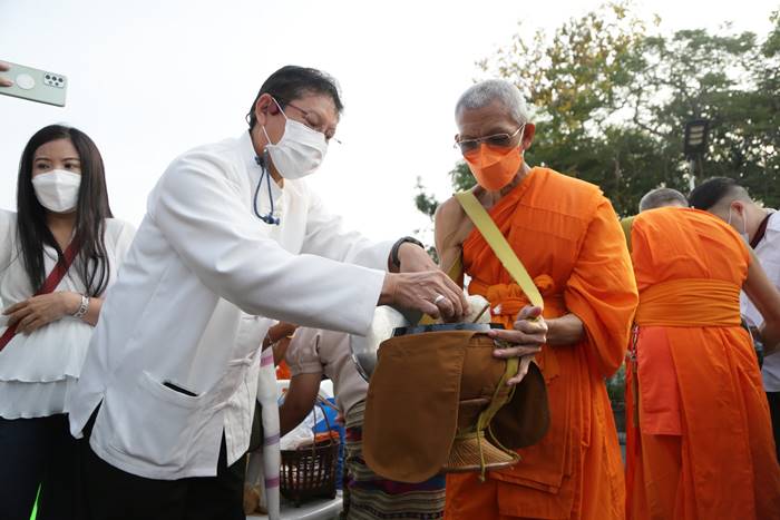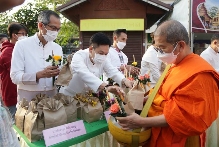 เช้าวันนี้ (1 ม.ค. 66) นายนิรัตน์ พงษ์สิทธิถาวร ผู้ว่าราชการจังหวัดเชียงใหม่ พร้อมด้วย นางกุสุมาล พงษ์สิทธิถาวร นายกเหล่ากาชาดจังหวัดเชียงใหม่ และ รองผู้ว่าราชการจังหวัดเชียงใหม่ ทั้ง 4 ท่าน ได้นำส่วนราชการ ศาล ทหาร ตำรวจ รวมถึงประชาชนชาวเชียงใหม่ และนักท่องเที่ยว ร่วมพิธีทำบุญตักบาตรข้าวสารอาหารแห้งถวายแด่พระภิกษุสงฆ์และสามเณร ที่ วัดพระสิงห์วรมหาวิหาร อำเภอเมืองเชียงใหม่ จังหวัดเชียงใหม่ โดยมี พระเทพสิงหวราจารย์ รองเจ้าคณะจังหวัดเชียงใหม่ เจ้าอาวาสวัดพระสิงห์วรมหาวิหาร นำพระภิกษุสงฆ์และสามเณร จำนวน 45 รูป ออกรับบิณฑบาตจากประชาชน เพื่อความเป็นสิริมงคล เนื่องในโอกาสวันขึ้นปีใหม่ พุทธศักราช 2566