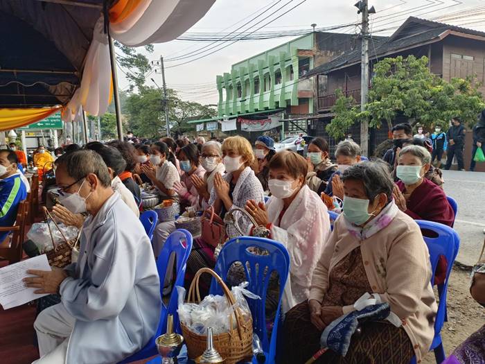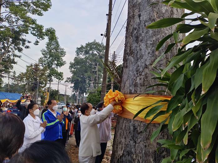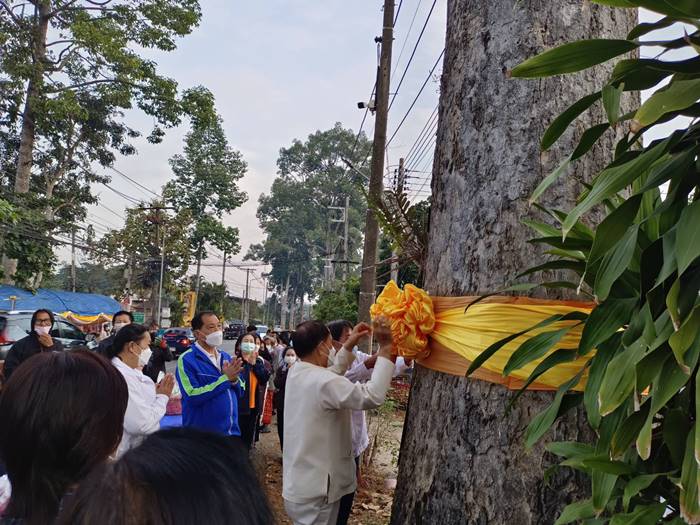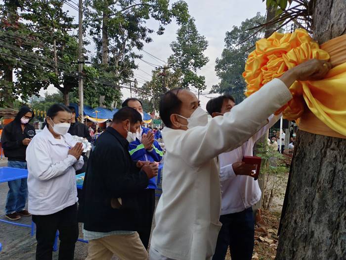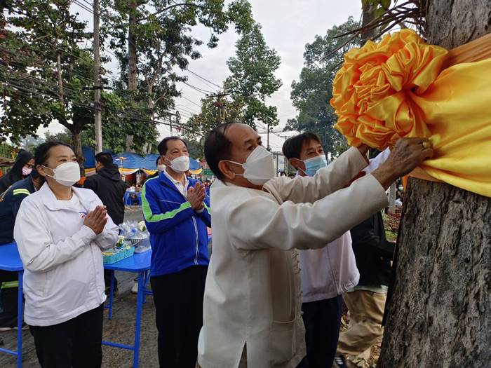 โดยท่านพระครูสาทรกิจโกศล เจ้าคณะอำเภอสารภี/เจ้าอาวาสวัดสารภี เป็นประธานพิธีฝ่ายสงฆ์ พร้อมพระภิกษุ สามเณร จำนวน 18 รูป และนายวรเดช เต็มดี นายกเทศมนตรีฯ เป็นประธานพิธีฝ่ายฆราวาส ซึ่งในพิธีฯประกอบด้วย พิธีเปิดกรวยหน้าพระฉายาลักษณ์สมเด็จพระเจ้าลูกเธอ เจ้าฟ้าพัชรกิติยาภาฯ พิธีทางศาสนา พิธีผูกผ้าต้นยางนา จำนวน 2 ต้น ประธานพิธีฝ่ายสงฆ์ กล่าวสัมโมทนียถกาและอวยพรปีใหม่ 2566 ประธานฝ่ายฆราวาส กล่าวอวยพรปีใหม่ 2566 มัคทายก กล่าวคำโยงถวายภัตตาหารข้าวบาตร พระภิกษุสงฆ์ สามเณร อนุโทนาให้พรและออกรับบิณฑบาต ณ บริเวณพิธีฯ และตลอดสองฝั่งถนนสายเชียงใหม่-ลำพูน (สายต้นยางนา) เสร็จพิธีฯ