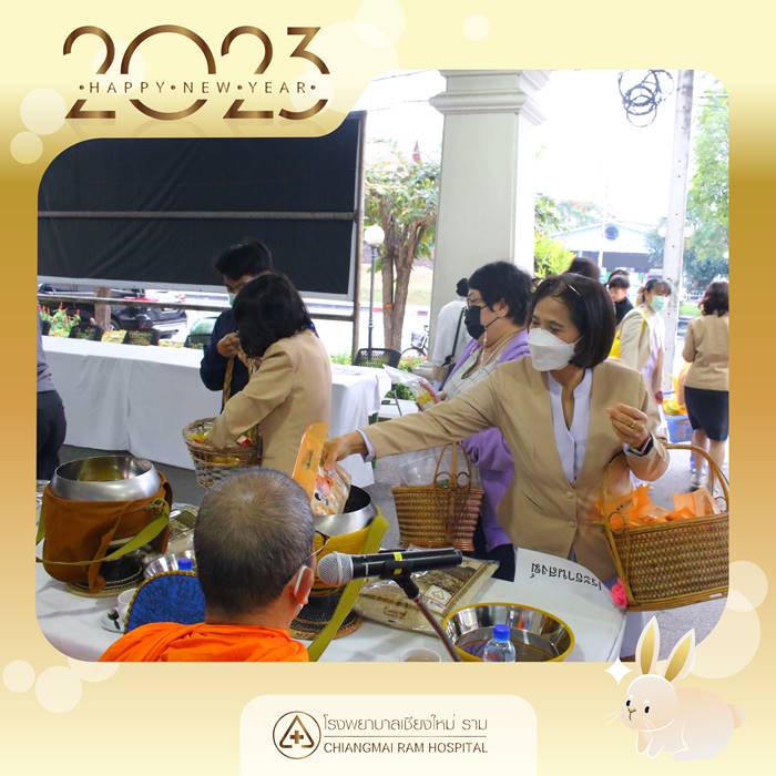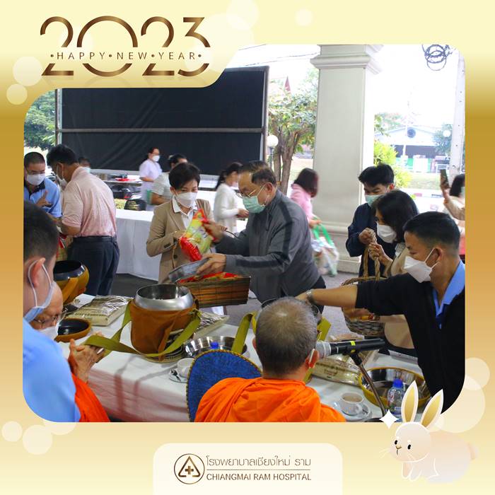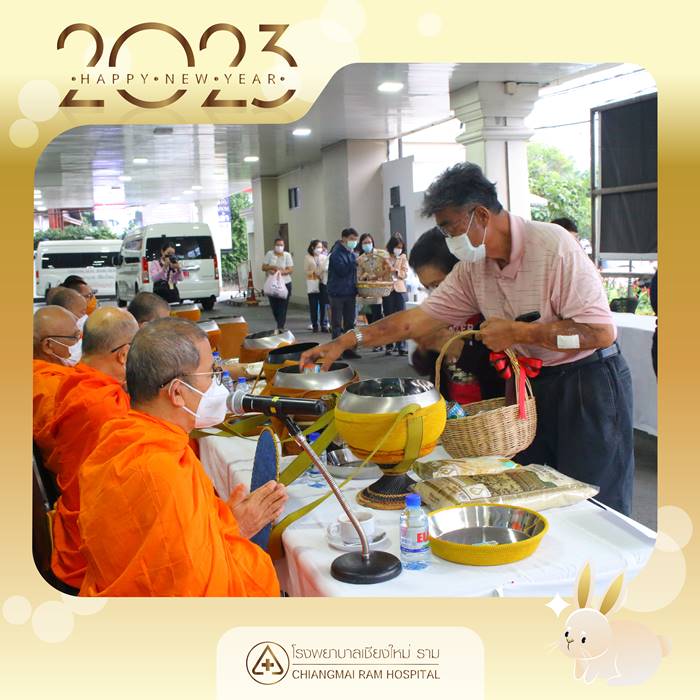 วันที่ 3 มกราคม 2566 โรงพยาบาลเชียงใหม่ ราม นำโดย นพ.ธวัชชัย ตัณสถิตย์ นพ.วรพันธ์ อุณจักร และ นพ.ประมุข อุณจักร กรรมการบริหาร พร้อมด้วยทีมผู้บริหาร แพทย์ พยาบาล เจ้าหน้าที่ ร่วมทำบุญตักบาตรเนื่องในวันขึ้นปีใหม่ ประจำปี พ.ศ.2566 โดยมี พระเทพสิงหวราจารย์ เจ้าอาวาสวัดพระสิงห์ วรมหาวิหาร รองเจ้าคณะ จ.เชียงใหม่ เป็นประธาน พร้อมด้วยพระสงฆ์ 8 รูป