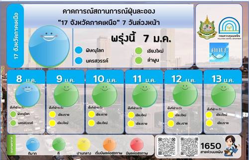 🌏☁️👉 คาดการณ์การสะสมของฝุ่นละอองวันพรุ่งนี้ คุณภาพอยู่ในระดับ “ดีมาก”