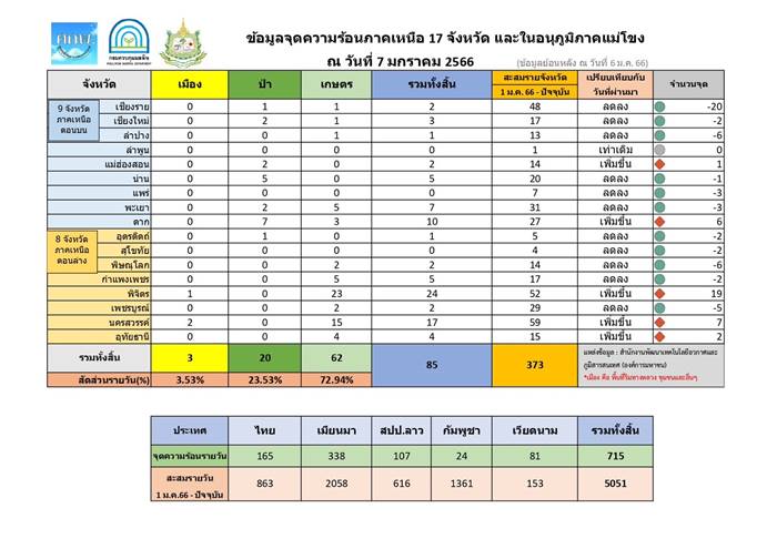 🌏🍂🔥 Hotspot เกิดขึ้นจำนวน 7 จุด (เชียงราย 2 จุด เชียงใหม่ 3 จุด แม่ฮ่องสอน 2 จุด และลำพูน 0 จุด)