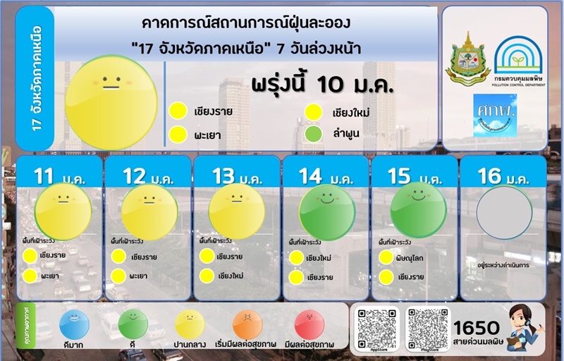 คาดการณ์การสะสมของฝุ่นละอองวันพรุ่งนี้ คุณภาพอยู่ในระดับ “ปานกลาง”