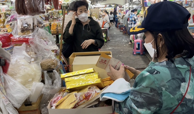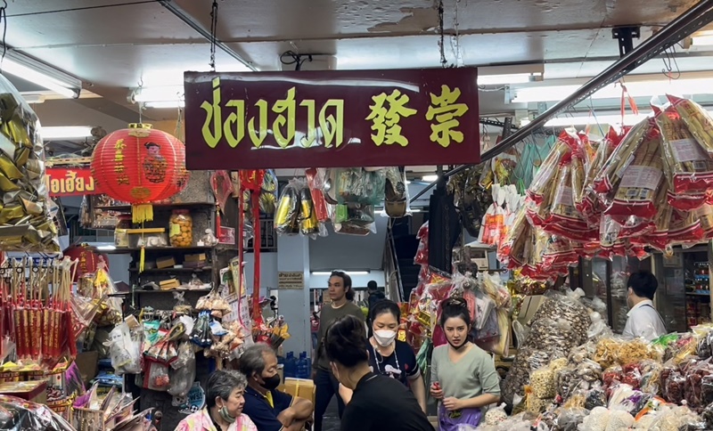 โดยที่บริเวณร้าน ช่องฮวด ซึ่งเป็นร้านจำหน่ายข้าวของเครื่องใช้และสังฆภัณฑ์ ภายในตลาดวโรรส พบว่าบรรยากาศเริ่มคึกคักมากขึ้น จากการที่มีประชาชนเริ่มทยอยออกมาจับจ่ายซื้อของเพื่อเตรียมใช้ในช่วงเทศกาลตรุษจีนที่จะถึงนี้ โดยพบว่าส่วนใหญ่ได้ออกมาซื้อข่าวของเครื่องใช้ และเครื่องเซ่นไหว้บรรพบุรุษ อาทิ กงเต๊กหลากหลายรูปแบบ ทั้งที่เป็นกระดาษเงิน กระดาษทอง และกงเต๊กที่มีการดัดแปลงจำลองเป็นบ้าน รถหรู กระเป๋า เครื่องประดับ และของใช้แบรนด์เนม ที่ขณะนี้กำลังได้รับความนิยมอย่างมาก โดยราคาก็มีตั้งแต่หลักสิบไปจนถึงหลักพัน อย่างเช่นบ้านหลังใหญ่ ที่มีราคาอยู่ที่ประมาณ 1,400 บาท และรถหรูที่มีราคาประมาณ 400 กว่าบาท เพื่อให้ลูกค้าเลือกไปเป็นของไหว้บรรพบุรุษในช่วงเทศกาล ส่วนการจับจ่ายทั่วไปนั้นก็พบว่ายังคงมีลูกค้าอย่างต่อเนื่องโดยเฉพาะในช่วงสายๆ และคาดว่าในวันพรุ่งนี้จะมีความคึกคักมากยิ่งขึ้นเนื่องจากใกล้เข้าสู่ช่วงเทศกาลตรุษจีนที่ในวันที่ 20 ม.ค.66 นี้จะตรงกับวันจ่ายซึ่งเป็นวันที่ชาวไทยเชื้อสายจีนจะต้องไปหาซื้ออาหารผลไม้และเครื่องเซ่นไหว้ต่างๆ