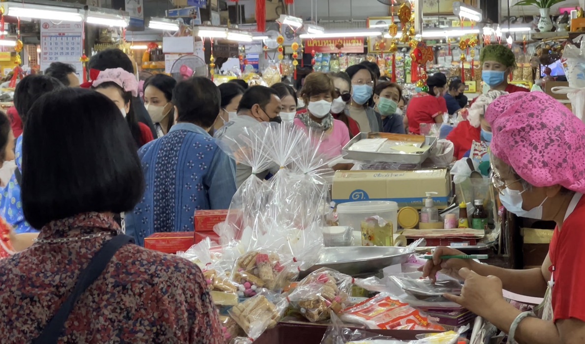 จากการสอบถามทางด้านแม่ค้ารายหนึ่งภายในตลาด บอกว่า ของไหว้เจ้าประเภทขนมถ้วยฟู และขนมเข่งนั้น ขายดีมาอย่างต่อเนื่องในช่วงสัปดาห์นี้ จากการที่ใกล้ช่วงเทศกาลตรุษจีน ทำให้มีประชาชนออกมาจับจ่ายซื้อกันอย่างต่อเนื่อง โดยเฉพาะในวันนี้ก็ขายดีเป็นพิเศษ เพราะวันนี้ถือเป็นวันจ่ายของเทศกาลตรุษจีน ทำให้คนออกมาซื้อของเตรียมไว้ในวันพรุ่งนี้ ส่วนยอดขายนั้นก็เพิ่มขึ้นมาหลายเท่าตัว ก็รู้สึกดีใจที่สินค้ากลับมาขายดีหลังจากช่วงเทศกาลตรุษจีนช่วง 2 ปีที่ผ่านมา เงียบเหงาจากผลกระทบของโรคโควิด ที่ทำให้ประชาชนไม่กล้าออกมาจับจ่ายซื้อของ