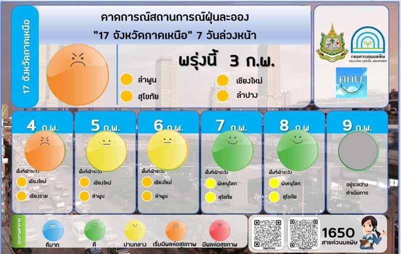 คาดการณ์การสะสมของฝุ่นละอองวันพรุ่งนี้ คุณภาพอยู่ในระดับ “เริ่มมีผลกระทบต่อสุขภาพ”