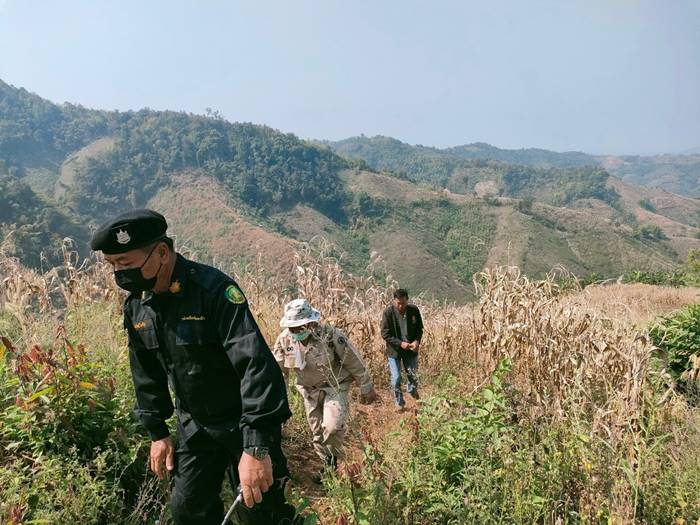 แม่อาย สนธิกำลังออกลาดตระเวนระวังไฟป่า พื้นที่เสี่ยงบ้านห้วยจันสี ต.แม่นาวาง พบผืนป่าถูกแผ้วถางเกือบ 20 ไร่ เร่งสืบหาคนทำผิดมาดำเนินคดี