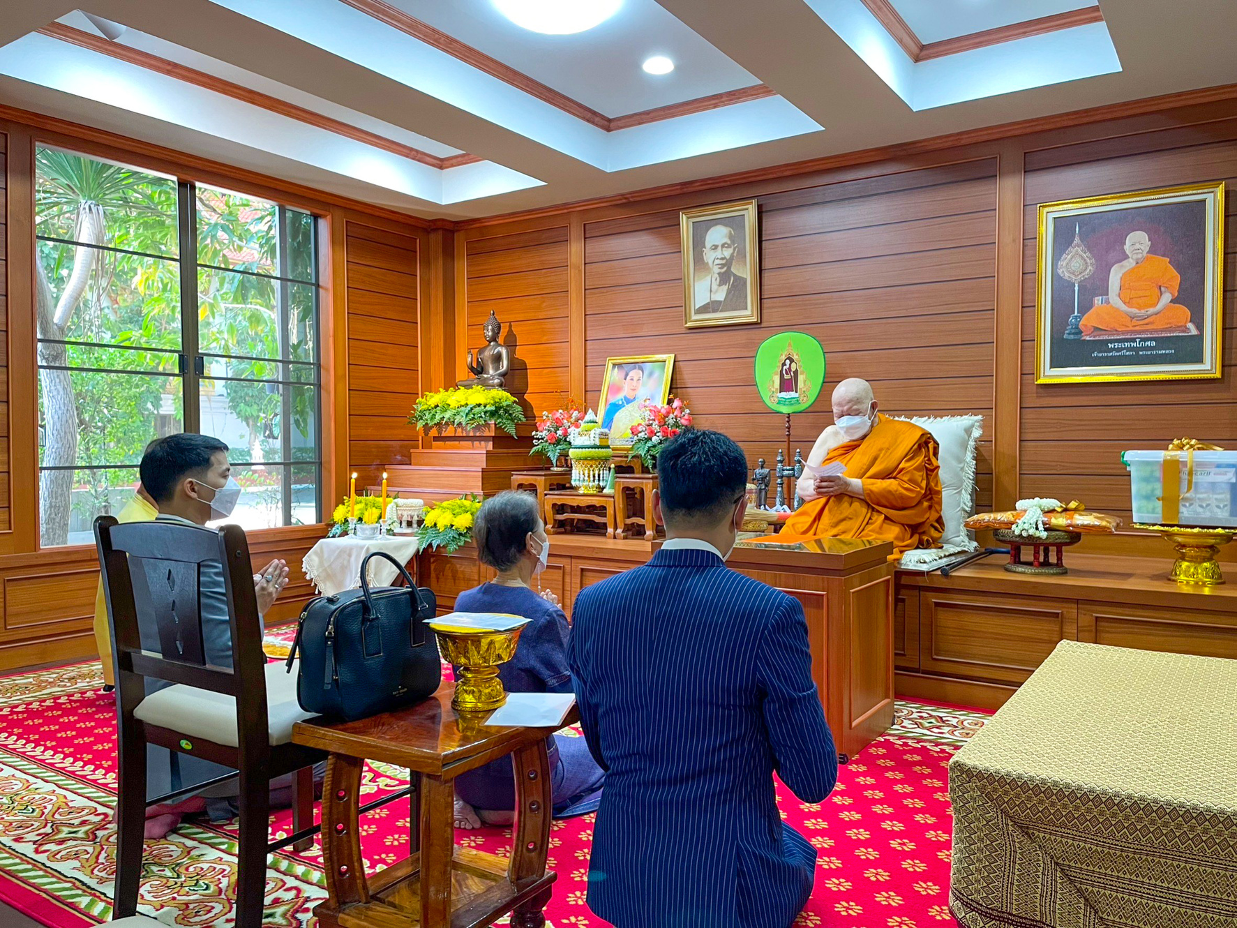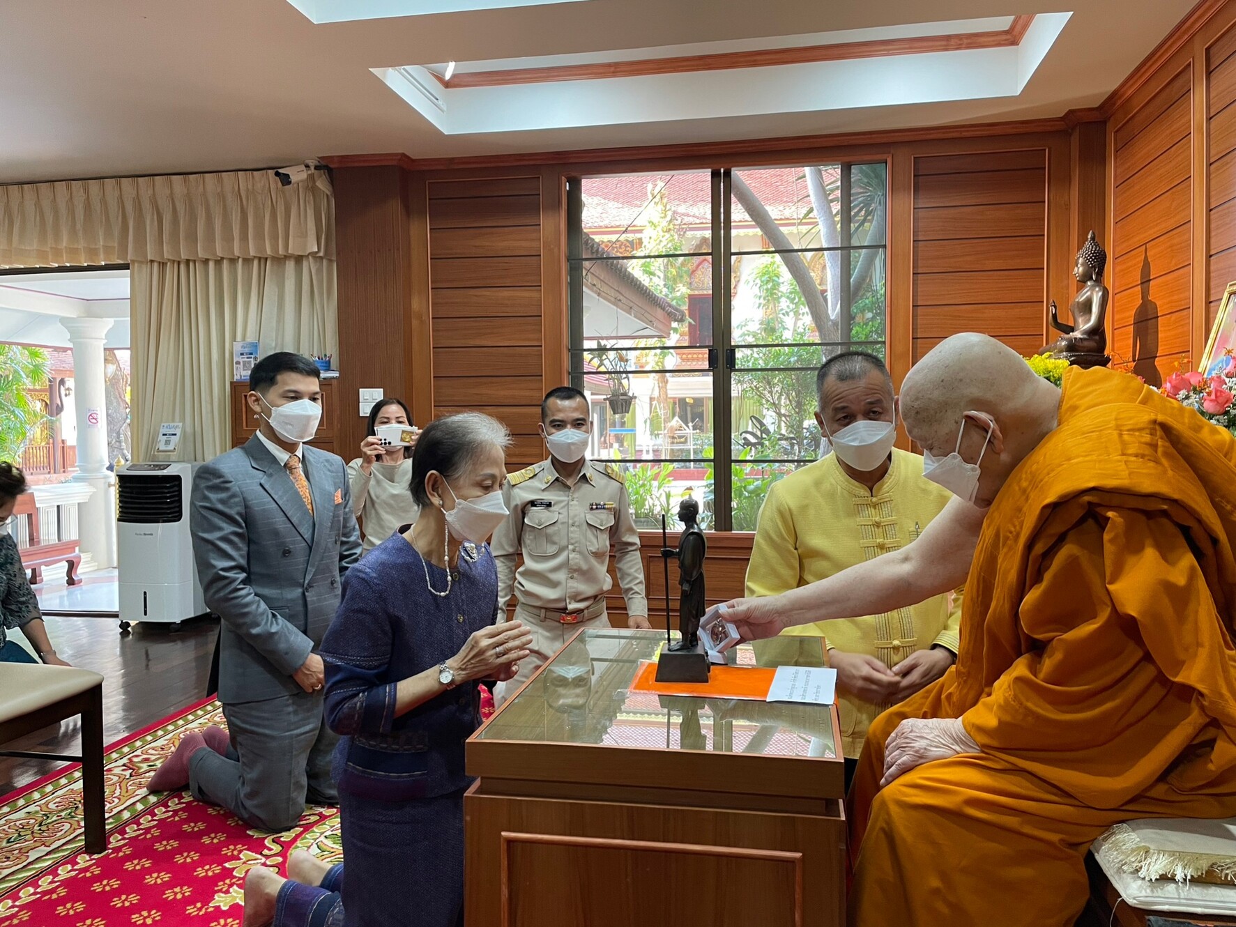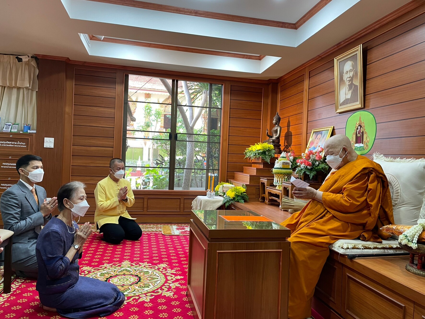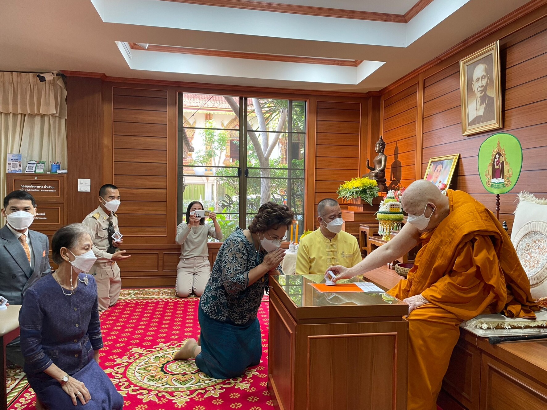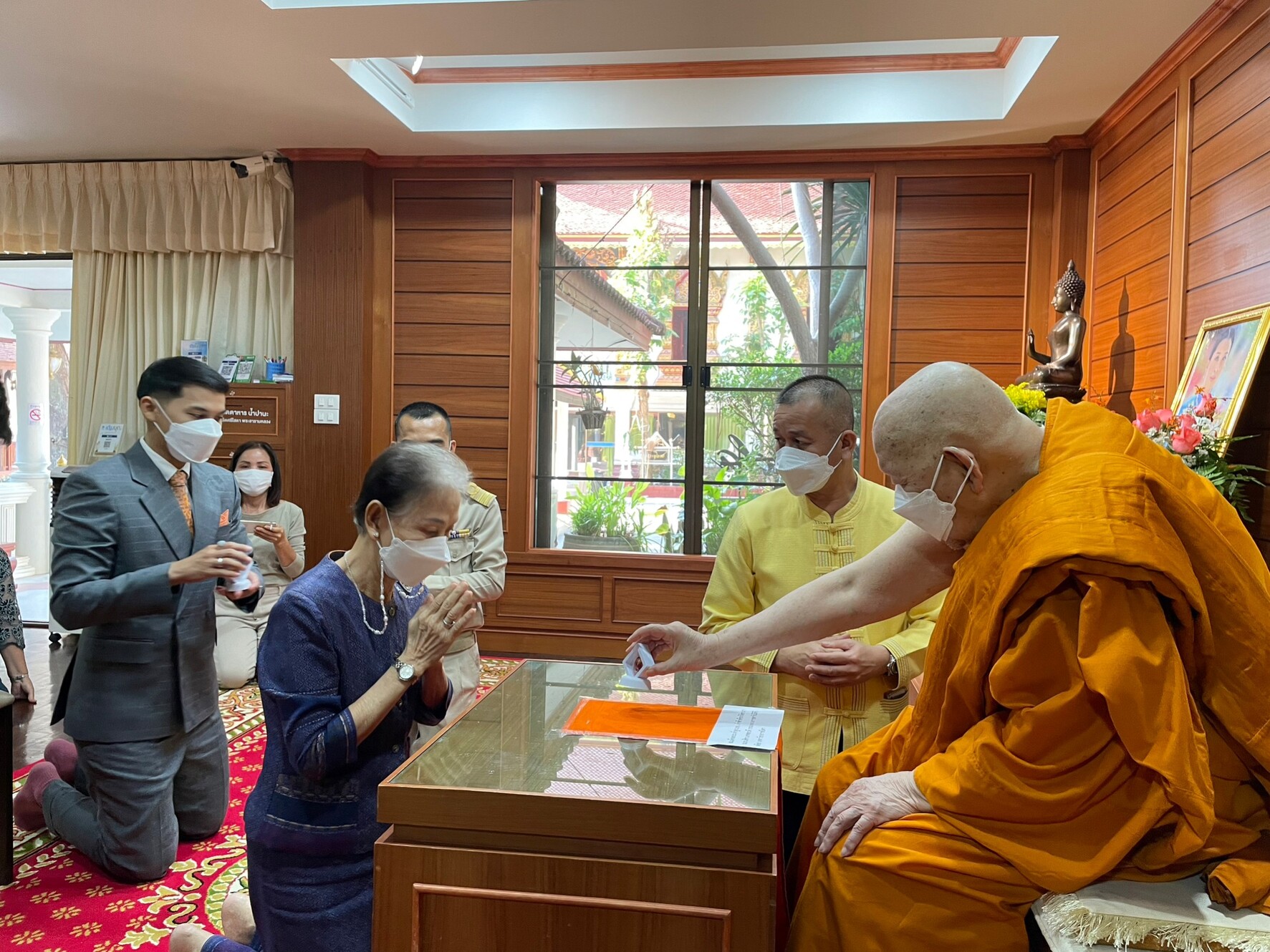 ถวายผ้าไตร และเครื่องไทยธรรมแด่เจ้าอาวาสวัดศรีโสดา