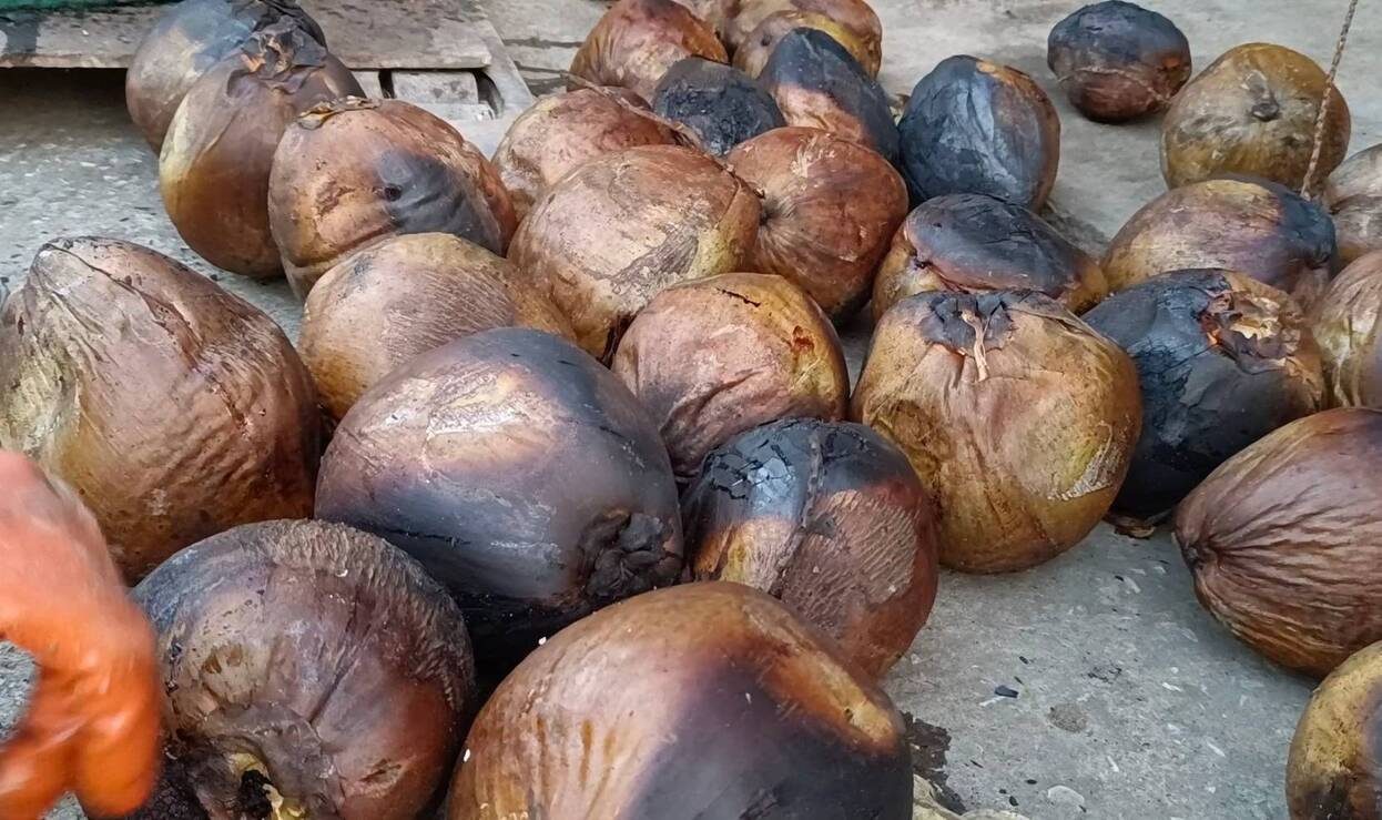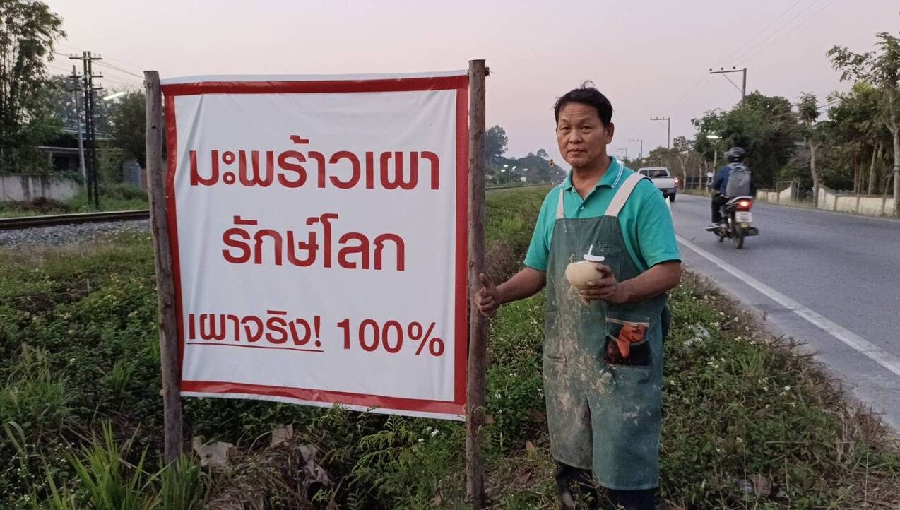 มะพร้าวเผาไร้ควัน ไม่มีผลกระทบต่อสิ่งแวดล้อม สร้างความพึงพอใจให้กับลูกค้าที่รู้ข่าวพากันแวะมาซื้อไปทานเป็นจำนวนมาก ทำให้มีกำลังใจทำกิจการ มะพร้าวเผาไร้ควันและจำหน่ายไม่แพงลูกละ 15 บาท 20 บาทถึง 30 บาท สร้างรายได้ให้กับครอบครัวเพื่อต่อสู้ต่อไป