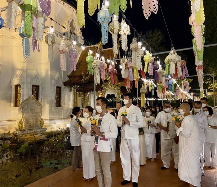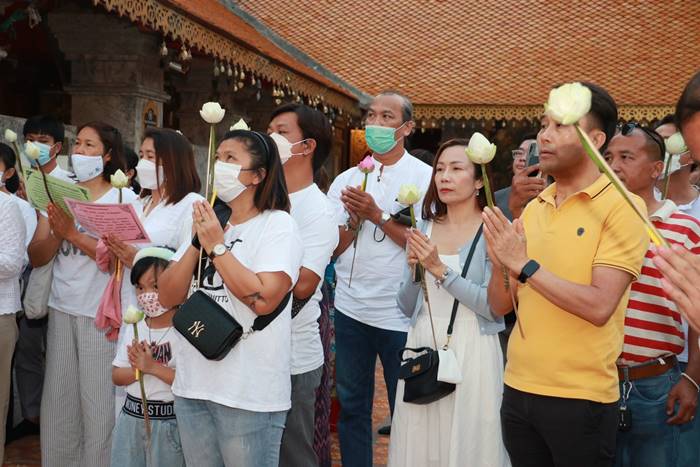 พุทธศาสนิกชนชาวเชียงใหม่ ร่วมรับฟังการแสดงพระธรรมเทศนา และประกอบพิธีเวียนเทียนเนื่องในวันมาฆบูชา ระลึกถึงคุณพระรัตนตรัย และเสริมสร้างความเป็นสิริมงคล