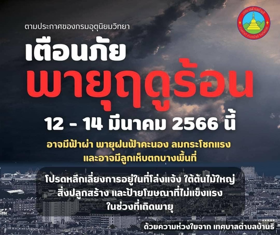 ทางกรมอุตุนิยมวิทยาแจ้งว่าจะมีลมกระโชคแรงพัดบริเวณตอนบนของประเทศในช่วงวันที่ 12-14 มีนาคม 2566 จึงขอความร่วมมือให้ใช้ความระมัดระวังการเดินทางในเส้นทางที่มีต้นไม้ใหญ่ อย่างเช่นเส้นทางวัฒนธรรมจจังหวัดเชียงใหม่ และลำพูน ถนนสายต้นยาง ทล.106 ลำพูน-เชียงใหม่ กม.170+093-กม.181+686 บ.สันป่าเลียง ม.4 ต.หนองหอย อ.เมืองเชียงใหม่ – บ.ปากกอง ม.6 ต.สารภี อ.สารภี จังหวัดเชียงใหม่ ขอให้ประชาชนที่อยู่รอบข้างต้นยางนาร่วมสังเกตรากต้นยางนาหากมีความผิดปรกติโปรดแจ้งเจ้าหน้าที่หรือประสานมาที่ โดยด่วน