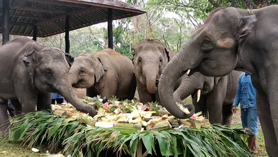 นางอัญชลี กัลมาพิจิตร ผู้บริหารปางช้างแม่สา ได้ให้สัมภาษณ์กับผู้สื่อข่าวว่า ทางปางช้างแม่สา ได้จัดทำสะโตกเลี้ยงช้าง ซึ่งเป็นอาหารเสริมของช้าง จำพวกผลไม้ซึ่งช้างที่เราจะเลี้ยงในปีนี้ ก็เป็นช้างเล็กที่มีวันเกิดในเดือนมีนาคม ซึ่งมีประมาณ 5 เชือก และส่วนช้างเชือกอื่นนั้น เราก็จะแบ่งจัดสรรปันส่วนให้เป็นพวกข้าวโพด หญ้า ที่จะนำไปเลี้ยงช้าง ซึ่งเป็นปกติของทุกๆ วัน ซึ่งเราต้องเตรียมอาหารไปเลี้ยงช้างวันนึงประมาณ 9 – 10 ตัน สำหรับช้างจำนวน 68 เชือก ที่อยู่ในปางช้างแม่สา ซึ่งในปีนี้เราก็ไม่มีอะไรพิเศษ เนื่องจากว่าค่าใช้จ่ายของปางเรา ก็ยังคงติดลบอยู่ ก็อาจจะเป็นเรื่องของสถานการณ์ PM 2.5 และเรื่องของนักท่องเที่ยวที่เดินทางเข้ามายังไม่มากพอที่จะมาซัพพอร์ตกิจการของปางช้าง และจะสังเกตได้ว่าในช่วงวันเสาร์ - อาทิตย์นี้มีคนมาใช้บริการน้อยมากๆ จากปกติ ซึ่งน่าจะอยู่ที่ประมาณ 300 – 400 คน แต่เสาร์ - อาทิตย์นี้มีประมาณ 100 คนต้นๆ ซึ่งแสดงถึงสถานการณ์ที่ไม่ค่อยจะดีเท่าไหร่ สำหรับสถานการณ์ท่องเที่ยวของจังหวัดเชียงใหม่