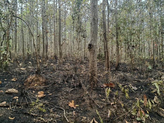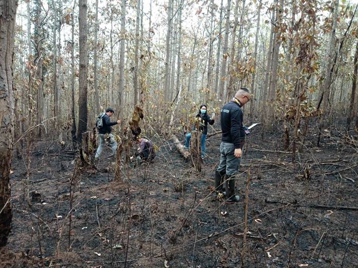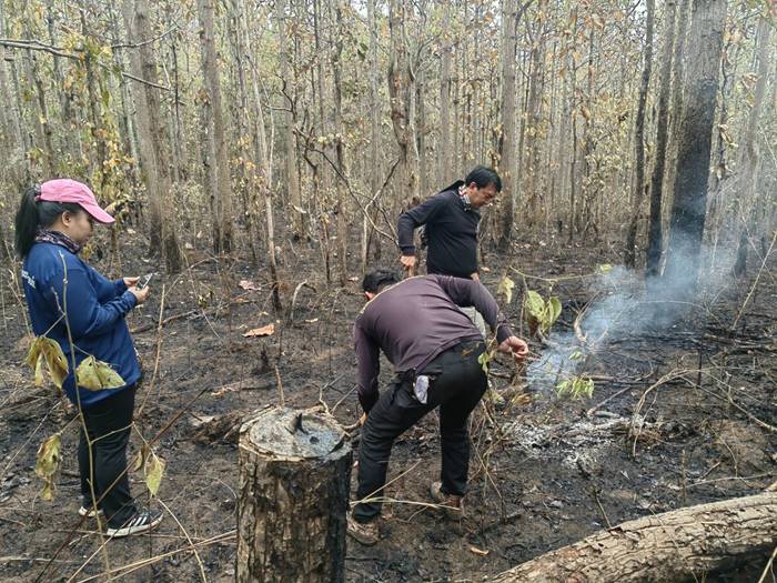 ทั้งนี้บางจุดยังมีไฟที่ไหม้ตอไม้คุกรุ่นอยู่ จึงได้ทำการดับเชื้อไฟจนสนิทแล้ว ได้สอบถามเจ้าของสวนลำไยที่ติดกับเขตป่า ว่าสังเกตเห็นมีควันไฟและเปลวไฟในเขตป่าช่วงเวลาประมาณ 13.00 น. และลุกลามตลอดทั้งคืน แต่เนื่องจากไม่มีเส้นทางรถยนต์ผ่านจึงไม่ได้เข้าไปตรวจสอบ และไม่มีสัญญาณโทรศัพท์จึงไม่ได้แจ้งให้ผู้นำหมู่บ้านทราบ สาเหตุคาดว่ามาจากการลักลอบเผาเพื่อหาของป่า