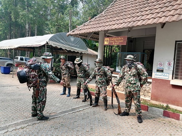 ป้องปรามการเผาป่า หน่วยพิทักษ์ป่าน้ำตกหมอกฟ้า ออกลาดตระเวนทั้งเดินเท้าทั้งรถยนต์ เกือบ 40 กม. ในพื้นที่ ไม่พบการทำผิด