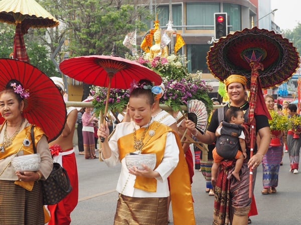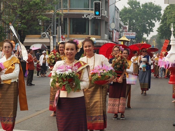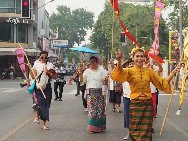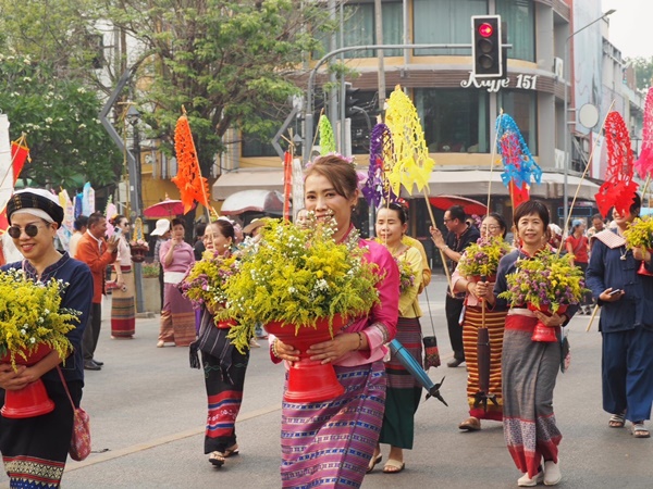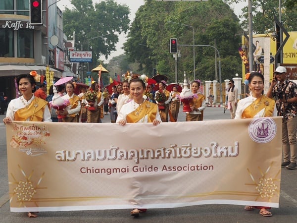 วันที่ 12 เมษายน 2566 เวลา 16.00-17.30 น. ททท.เขียงใหม่ จัดขบวนแห่ “ไหว้สาจุ่มสะหรีน้ําทิพย์ปี๋ใหม่เมือง” อัญเชิญน้ำศักดิ์สิทธิ์จาก 9 แหล่งต้นน้ำสำคัญในจังหวัดเชียงใหม่ สู่น้ำทิพย์ปี๋ใหม่เมืองเจียงใหม่ ประจําปี 2566” ตามฤกษ์มงคลปฏิทินล้านนา ก่อนนำไปแจกจ่ายแก่ประชาชน เพื่อเป็นสิริมงคล โดยมีนางพิกุล เรืองไชย นายกสมาคมมัคคุเทศก์เชียงใหม่ พร้อมด้วยคณะกรรมการ และสมาชิกสมาคมจำนวน 60 คน ได้เข้าร่วมขบวนแห่ฯอัญเชิญ น้ำทิพย์นมัสการพระพุทธสิหิงค์ ซึ่งประกอบไปด้วยเครื่องสักการะบูชา ตามประเพณีล้านนา