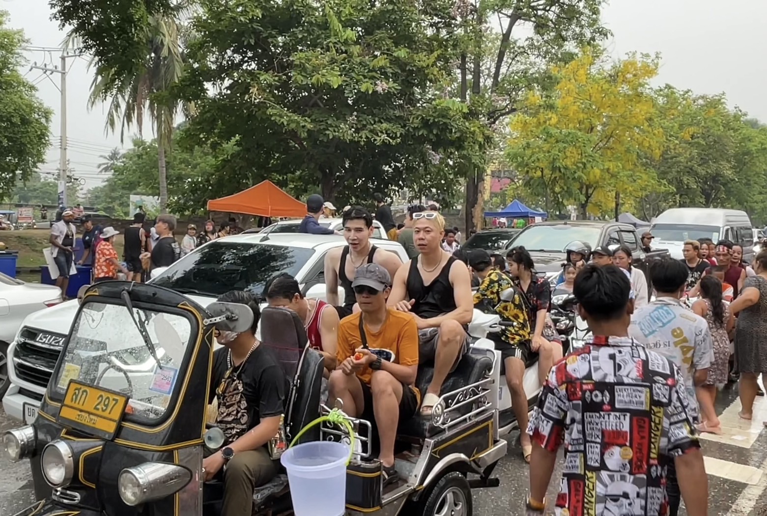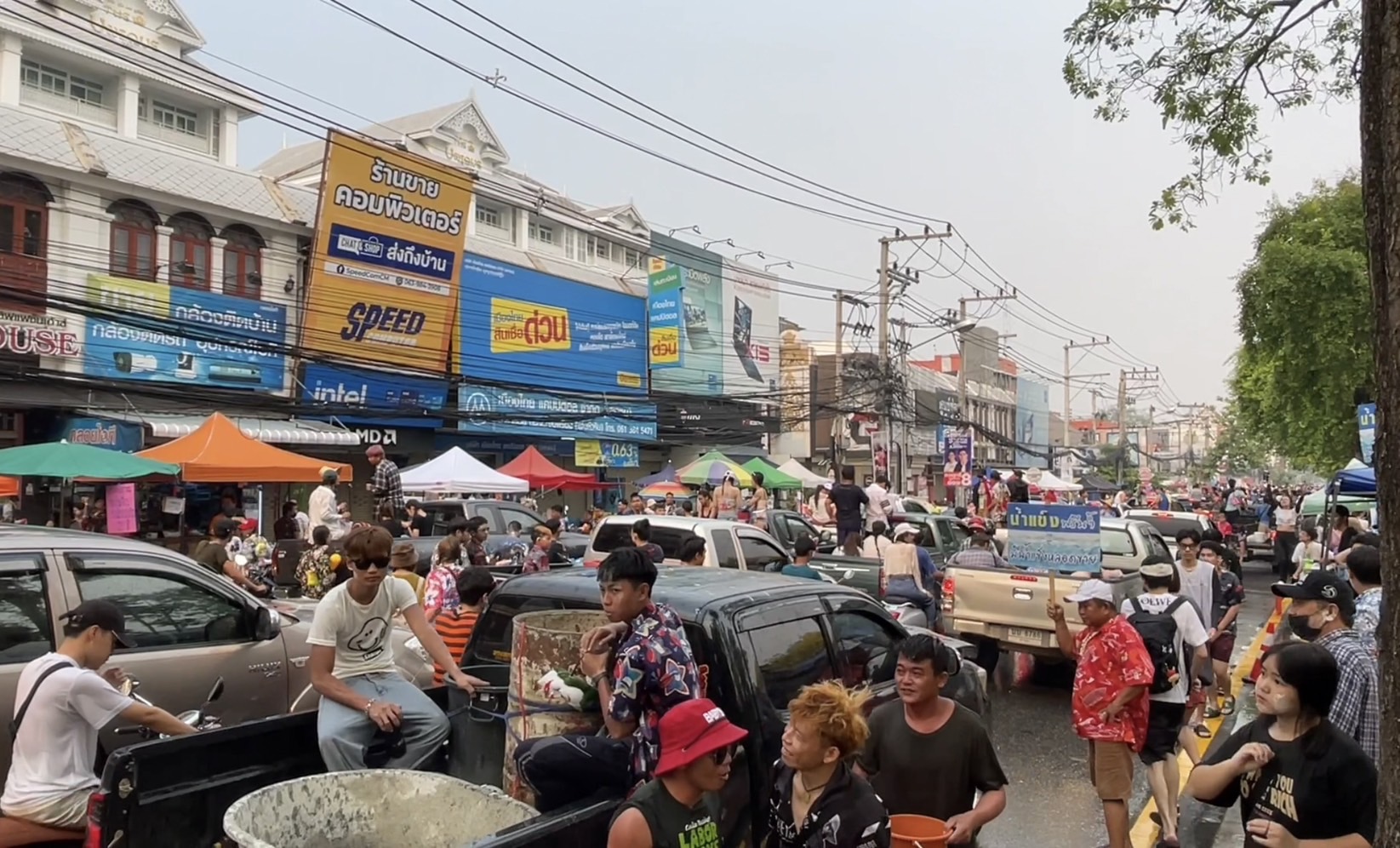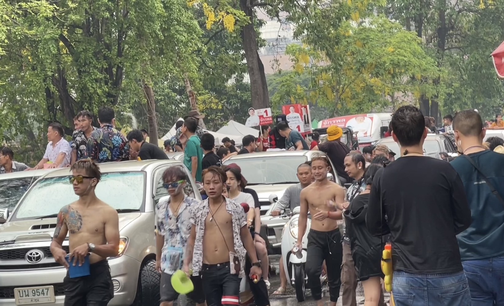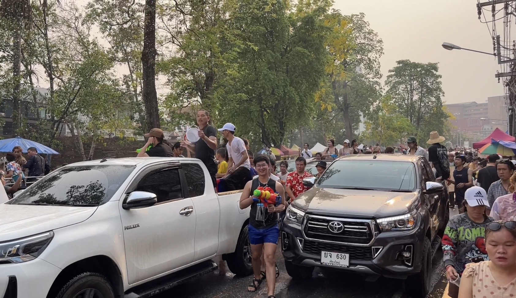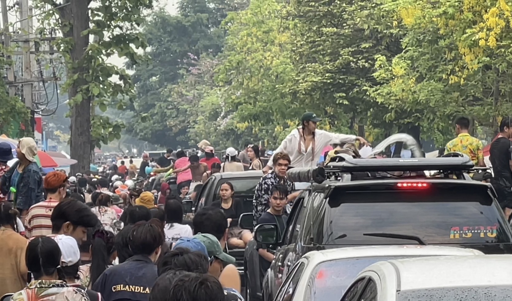 เจ้าสู่ช่วงเย็นวันสุดท้ายของเทศกาลสงกรานต์ (15 เม.ย.66) ที่จังหวัดเชียงใหม่ ขณะนี้เวลาประมาณเกือบ 19.00 น. แล้ว แต่บรรยากาศการเล่นสาดน้ำของประชาชนและนักท่องเที่ยวทั้งชาวไทยและต่างชาติ โดยในตัวเมืองเชียงใหม่ และบริเวณรอบคูเมือง ยังคงคึกคักสนุกสนานอย่างต่อเนื่องตลอดทั้งวัน ที่มีปริมาณรถและประชาชนหนาแน่น พากันขับรถและเดินตามท้องถนนเล่นสาดน้ำกันเต็มเส้นทางท่ามกลางสภาพอากาศร้อนจัด โดยในวันนี้ถือเป็นวันสุดท้ายของการเล่นสงกรานต์สาดน้ำกันแบบเต็มรูปแบบ ทำให้ทุกคนต่างจัดหนักจัดเต็ม ทั้งการสาดน้ำและการร่วมเล่นสาดน้ำของเทศกาลสงกรานต์ในปีนี้