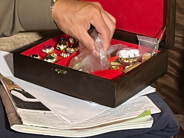 ทรัพย์สินภายในบ้านของบิดาอย่างละเอียดแล้ว จึงเป็นไปได้ยากที่จะไม่พบเห็นงาช้างจำนวนมากที่หายไป ซึ่งงาช้างของบิดาตน หลายกิ่งมีขนาดใหญ่ และมีน้ำหนักมาก เรื่องนี้จึงมีเงื่อนงำอย่างแน่นอน ตอนนี้ตนอยากรู้ว่าใครเป็นคนขนย้ายงาช้างออกไป และใครเป็นคนนำมาคืนไว้ภายในบ้าน