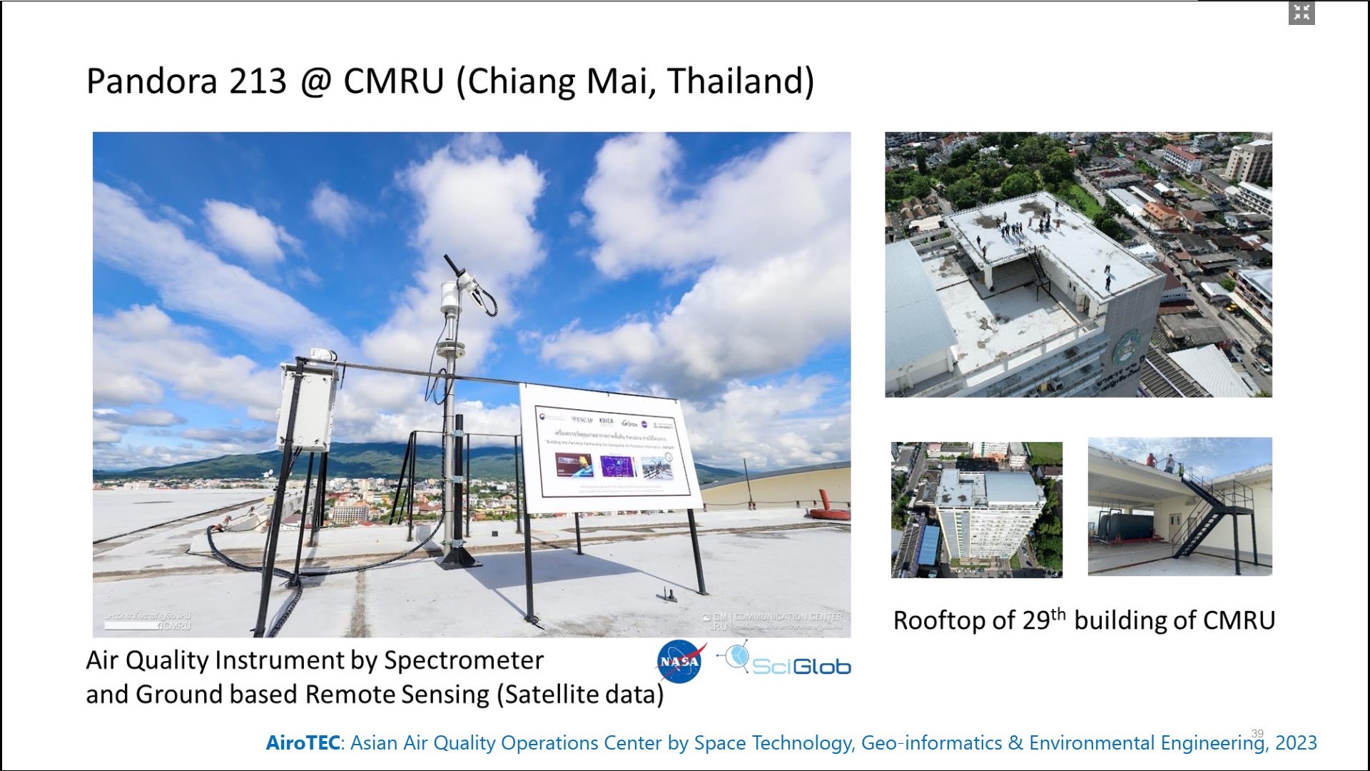 ซึ่งอยู่โครงการ “Building the Pan-Asia Partnership for Geospatial Air Pollution information” (PAPGAPi) ให้กับเจ้าหน้าที่ปฏิบัติในระดับพื้นที่ ของเครื่องตรวจวัดภาคพื้นดิน Pandora ประกอบด้วย กรมควบคุมมลพิษ มหาวิทยาลัยราชภัฏเชียงใหม่ และมหาวิทยาลัยสงขลานครินทร์ อีกทั้งนักวิจัยและเจ้าหน้าที่รัฐของหน่วยงานที่เกี่ยวข้องกับการตรวจวัดคุณภาพอากาศในระดับพื้นที่และท้องถิ่น โดยมี ดร.สุรัสวดี ภูมิพานิช ผู้จัดการโครงการกล่าวรายงาน และ ผู้ช่วยศาสตราจารย์สุรศักดิ์ นุ่มมีศรี รองอธิการบดีมหาวิทยาลัยราชภัฏเชียงใหม่ ให้การต้อนรับ ระหว่างวันที่ 19-21 เมษายน 2566 ณ ห้องประชุมเอื้องสายส่องแสง มหาวิทยาลัยราชภัฏเชียงใหม่ อำเภอเมือง จังหวัดเชียงใหม่