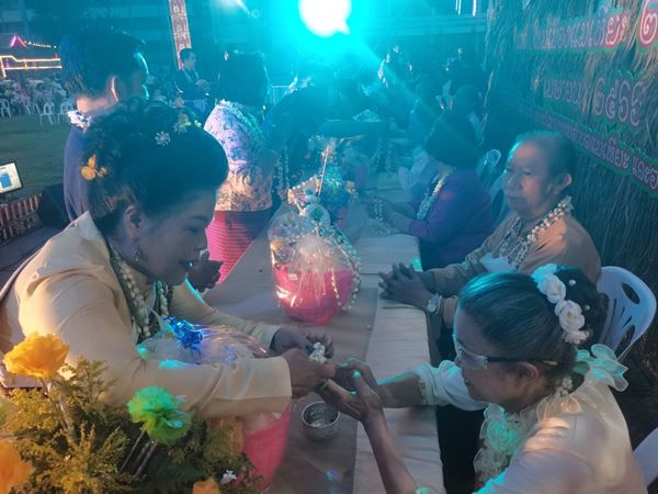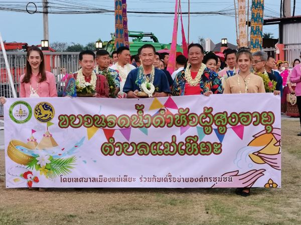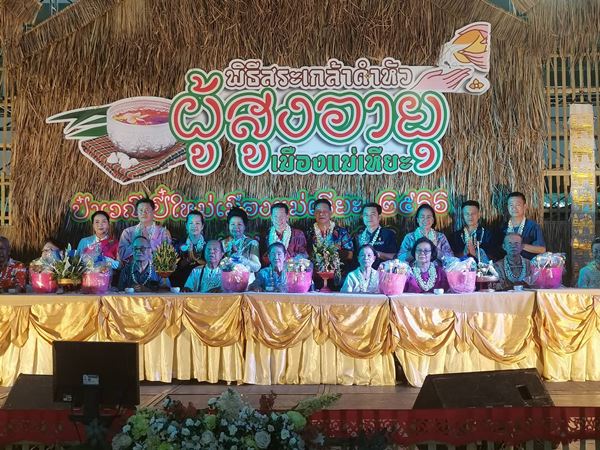เทศบาลเมืองแม่เหียะจัดพิธีสระเกล้าดำหัวผู้สูงอายุ และรดน้ำดำหัวนายกธนวัฒน์