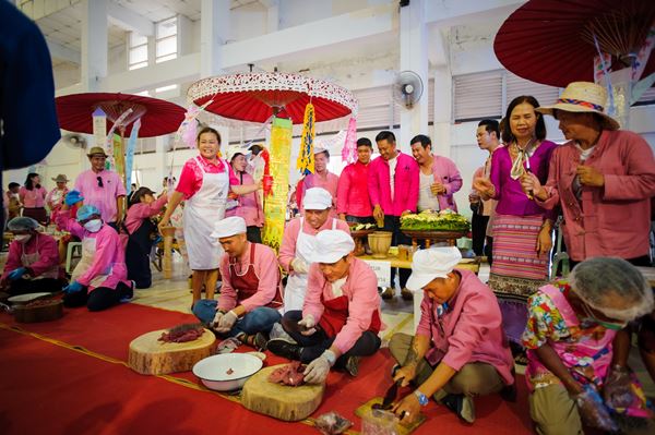 โดยมี นายชลิต ทิพย์คำ นายอำเภอแม่ออน และนายกกิ่งกาชาด พร้อมได้จัดงานประกวดแข่งขันส้มตำลีลาและลาบเมืองลีลา อาหารเมืองเหนือล้านนา ที่มีประเพณีต่างๆ ต้องมีลาบ เพื่อให้มีโชคมีลาบเป็นสิริมงคล จากความเชื่อที่นับถือกันมายาวนานหลายชั่วอายุคน จากสุดยอดฝีมือ และร่วมชมมินิคอนเสิร์ต วงเดอะเพอะ โดยมีพี่น้องชาวแม่ออน เข้าร่วมแข่งขันลาบและส้มตำลีลานับ 1,000 กว่าคน จาก 6 ตำบล 49 หมู่บ้าน และผู้คนแต่งตัวด้วยผ้าลายเมืองล้านนาหลากหลายสีสัน ส่วนบรรยากาศเป็นไปอย่างกันเอง ผู้คนทุกสาขาอาชีพมากหน้าหลายตาสร้างความสุขและรอยยิ้มให้พี่น้องชาวอำเภอแม่ออน เป็นอย่างมากและเป็นกันเองอย่างที่สุดมีความสุขทั่วหน้ากันทุกคน