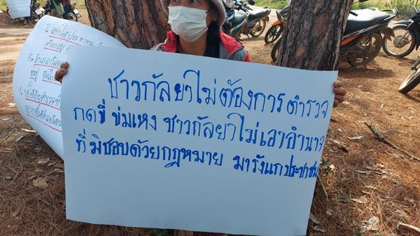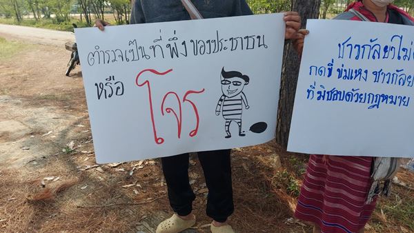 ส่วนนายโชค (นามสมมุ)ติ ชาวบ้านเปิดเผยว่า วันนี้มาเรียกร้องความเป็นธรรมให้กับชาวบ้าน ที่ได้รับความเดือดร้อนจากการปฏิบัติหน้าที่ของตำรวจ สภ.กัลยาณิวัฒนา ทั้งตั้งด่านลอย เรียกรับผลประโยชน์กับผู้ประกอบการเป็นรายเดือน นอกจากนี้ เรื่องยาเสพติดยังพบว่าเจ้าหน้าที่จะจับกุมเฉพาะผู้เสพเท่านั้น ส่วนผู้ค้ากลับปล่อยลอยนวลเหมือนรู้กัน ทำให้มีการแพร่ระบาดของยาเสพติด ส่วนช่วงกลางคืนชาวบ้านที่ออกหาปลา หาเขียด ตอนกลางคืนมักจะถูกเจ้าหน้าที่หาเรื่องจับกุมเป็นประจำ ทำให้เป็นที่เบื่อหน่ายของชาวบ้าน