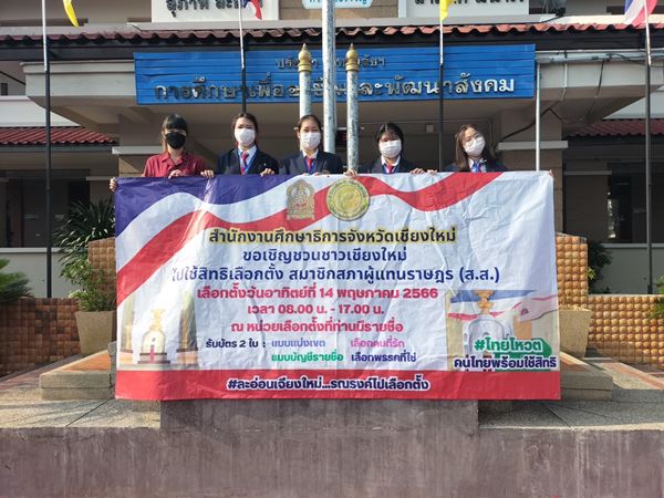 ปฏิบัติหน้าที่ผู้อำนวยการสำนักงานอาชีวศึกษาจังหวัดเชียงใหม่ มอบหมายให้นายธีรวุธ ยะอูป รองผู้อำนวยการฝ่ายบริหารทรัพยากร นายชรันต์ยุทธ์ บุญยง รองผู้อำนวยการฝ่ายวิชาการ พร้อมคณะครู จัดกิจกรรม “เชิญชวนชาวเชียงใหม่ ไปใช้สิทธิเลือกตั้ง สมาชิกสภาผู้แทนราษฏร (ส.ส.) เพื่อรณรงค์และให้ความรู้เกี่ยวกับการเลือกตั้งสมาชิกสภาผู้แทนราษฎร (ส.ส.) แก่นักเรียน นักศึกษา โดยผู้มีสิทธิเลือกตั้ง มีอายุตั้งแต่ 18 ปีบริบูรณ์ขึ้นไป โดยให้เข้าสิทธิเลือกตั้งตามภูมิลำเนาที่อยู่ในบัตรประจำตัวประชาชน หรือ ใช้สิทธิ์เลือกตั้งนอกพื้นที่ตามสิทธิ์ที่ลงทะเบียนไว้สำหรับนักเรียน นักศึกษา ที่ไม่ได้มีภูมิลำเนาอยู่ที่จังหวัดเชียงใหม่ ในวันที่ 14 พฤษภาคม 2566