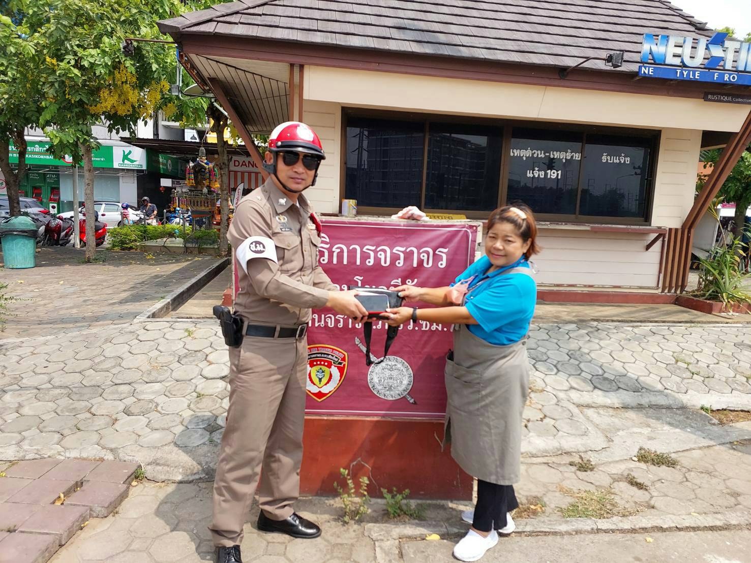 เจ้าหน้าที่ตำรวจจราจร กลุ่มงานจราจรตำรวจภูธรจังหวัดเชียงใหม่ นำโทรศัพท์และกระเป๋าที่พลเมืองดี เก็บได้ ส่งคืนเจ้าของเป็นที่เรียบร้อย