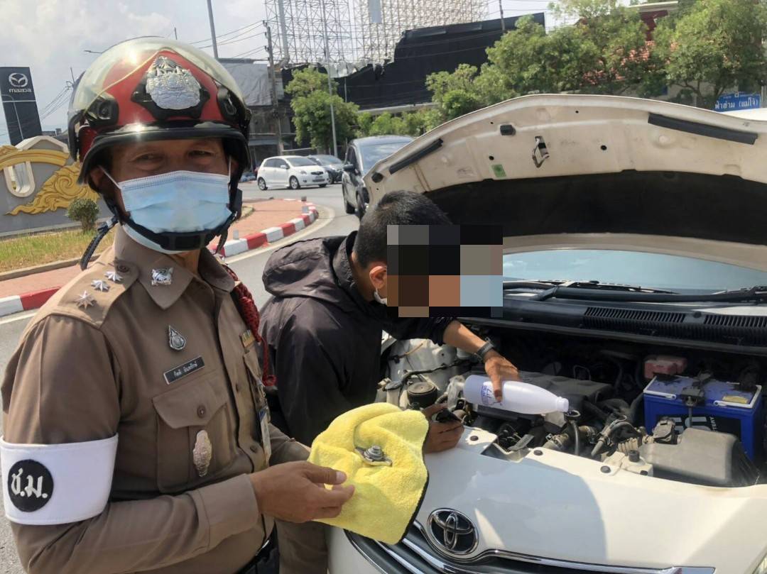 วันที่ 3 พ.ค.66 เวลา 14.00 น. ร.ต.อ.กิตติ อินทรักษ์ รอง สว.จร.กลุ่มงานจราจร ตำรวจภูธรจังหวัดเชียงใหม่ , ส.ต.อ.ธวัชชัย ศูนย์กลาง ผบ.หมู่ งานจราจร กลุ่มงานจราจร ตำรวจภูธรจังหวัดเชียงใหม่ ขณะปฏิบัติหน้าที่บริเวณแยกฟ้าฮ่าม อ.เมือง จ.เชียงใหม่ได้พบรถยนต์ประชาชนขัดข้องจึงได้เข้าไปตรวจสอบเบื้องต้นพบว่าความร้อนขึ้นเนื่องจากหม้อน้ำแห้ง จึงช่วยทำการเติมน้ำและประสานช่างมาแก้ไขต่อไป