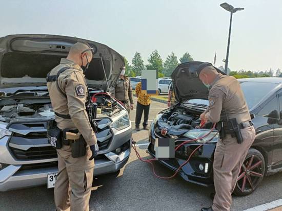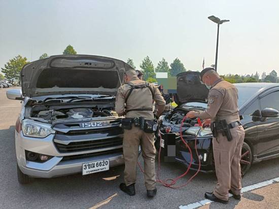 เจ้าหน้าที่ตำรวจ สภ.ช้างเผือก จ.เชียงใหม่ ช่วยเหลือประชาชน ซึ่งเดินทางมาเลือกตั้งล่วงหน้า เหตุรถยนต์สตาร์ทไม่ติด จึงได้พ่วงแบตเตอรี่ ทำให้สามารถเดินทางต่อไปได้