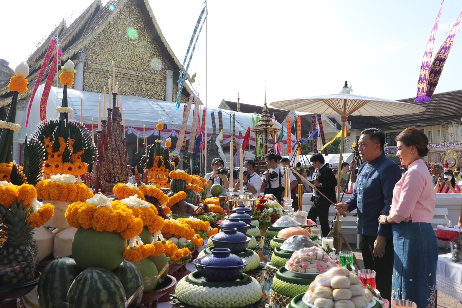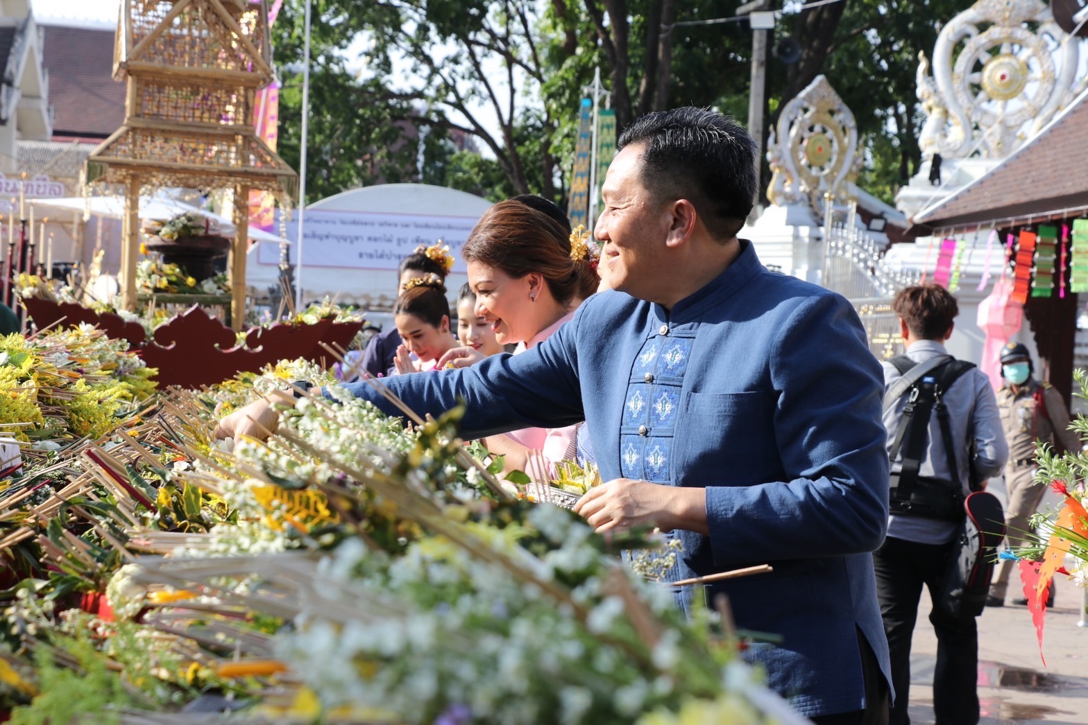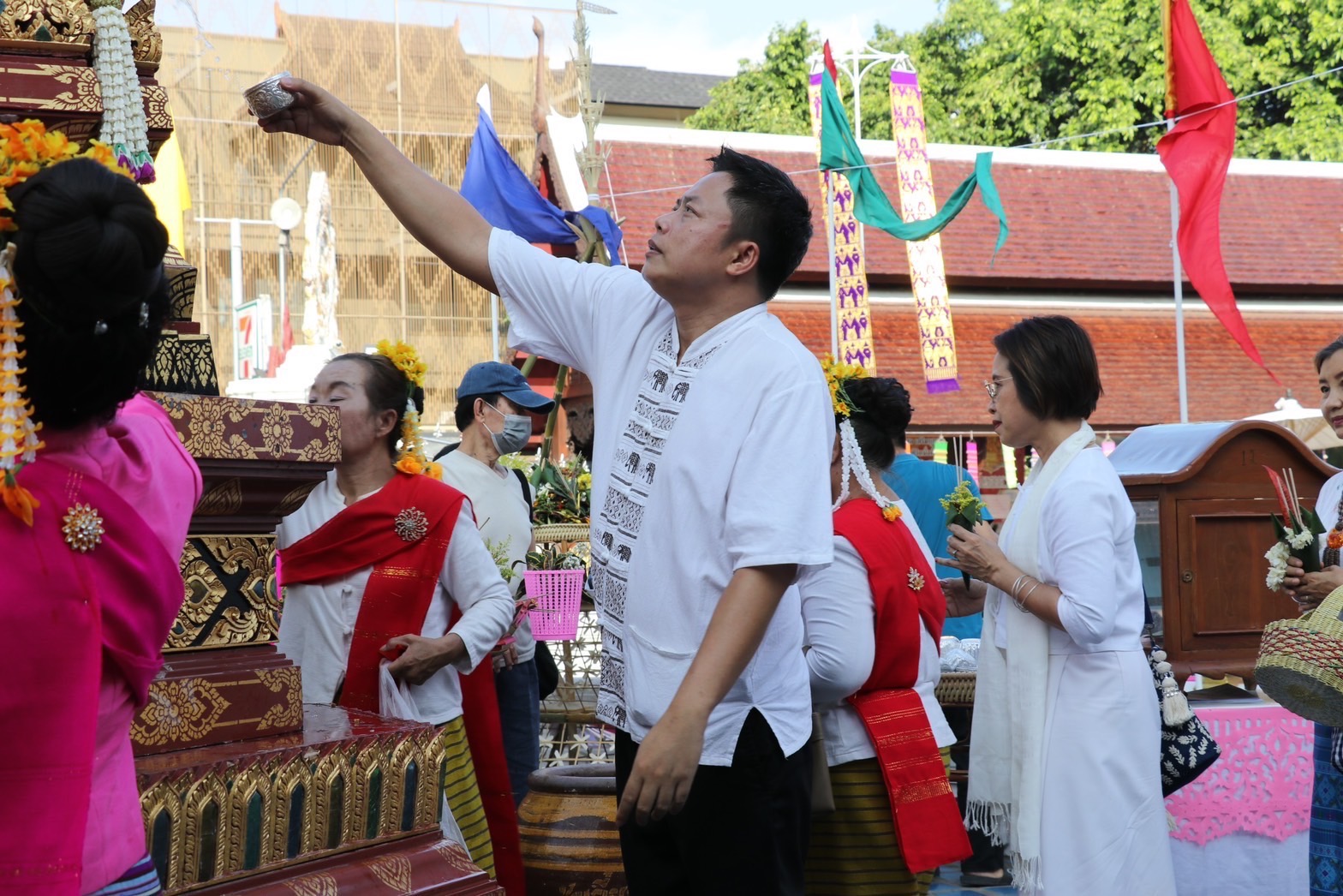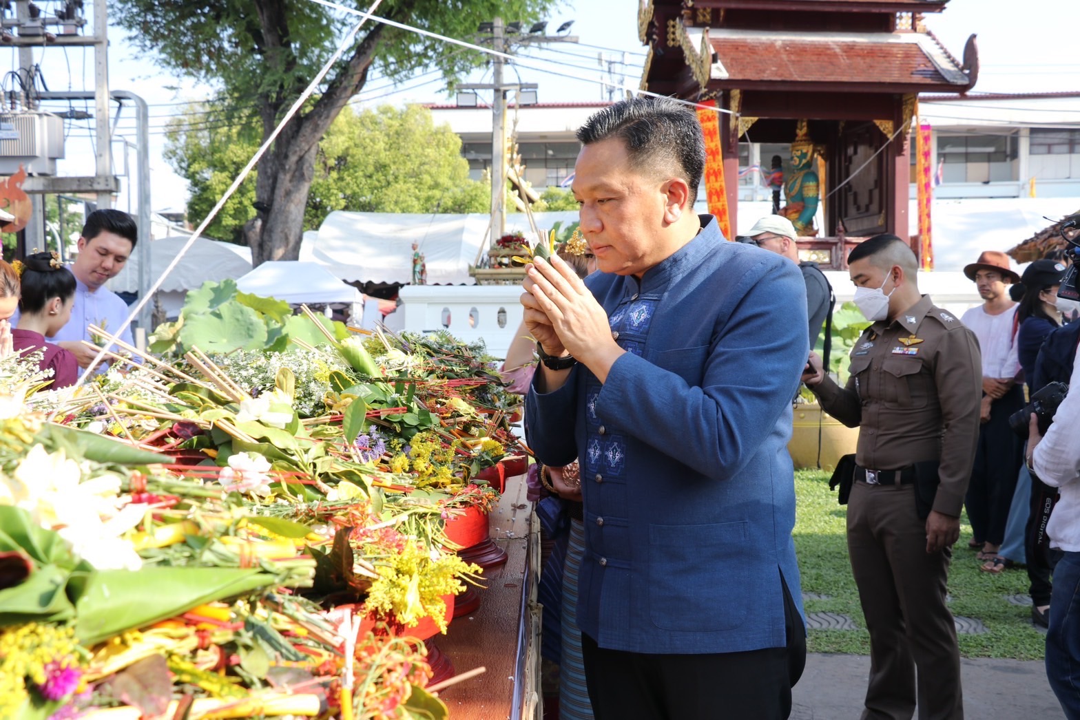 ประชาชนและนักท่องเที่ยว นำข้าวตอกดอกไม้และธูปเทียน ร่วมประเพณีใส่ขันดอกอินทขีล ไหว้เสาหลักเมืองเชียงใหม่ วันแรกคึกคัก