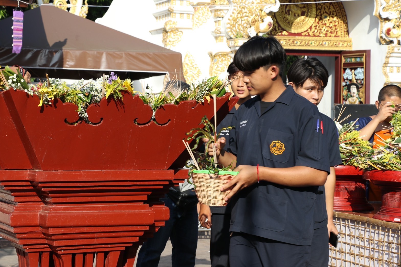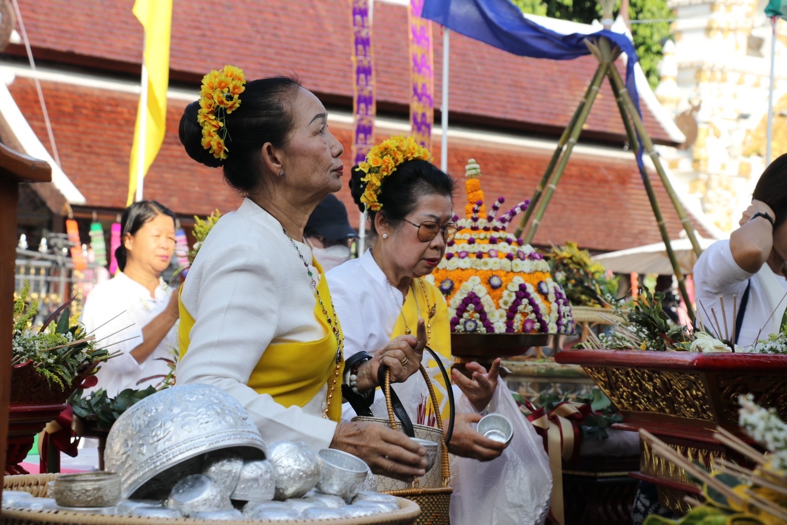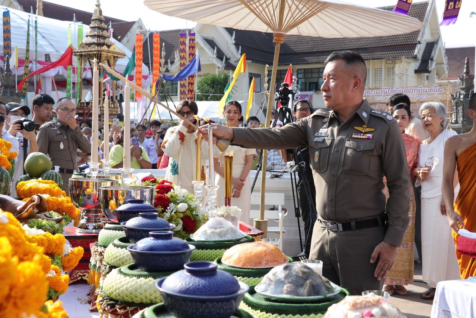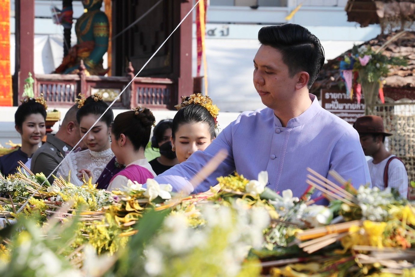 ประชาชนและนักท่องเที่ยว นำข้าวตอกดอกไม้และธูปเทียน ร่วมประเพณีใส่ขันดอกอินทขีล ไหว้เสาหลักเมืองเชียงใหม่ วันแรกคึกคัก