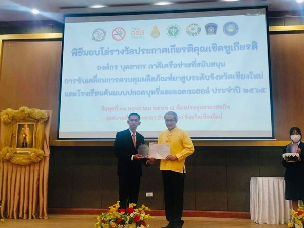 วันพุธ ที่ 31 พฤษภาคม 2566 นายมงคล กาเหว่า ผู้อำนวยการโรงเรียนกาวิละวิทยาลัย จังหวัดเชียงใหม่ รับโล่ประกาศเกียรติคุณเชิดชูเกียรติ องค์กร บุคลากร ภาคีเครือข่ายที่สนับสนุนการขับเคลื่อนการควบคุมผลิตภัณฑ์ยาสูบ ระดับจังหวัดเชียงใหม่ และ โรงเรียนต้นแบบปลอดบุหรี่และแอลกอฮอล์ ประจำปี 2565 เนื่องในวันงดสูบบุหรี่โลก 31 พฤษภาคม 2566 ณ ห้องประชุมอาคารศาลาสหกิจ เทศบาลตำบลท่าศาลา อำเภอเมือง จังหวัดเชียงใหม่
