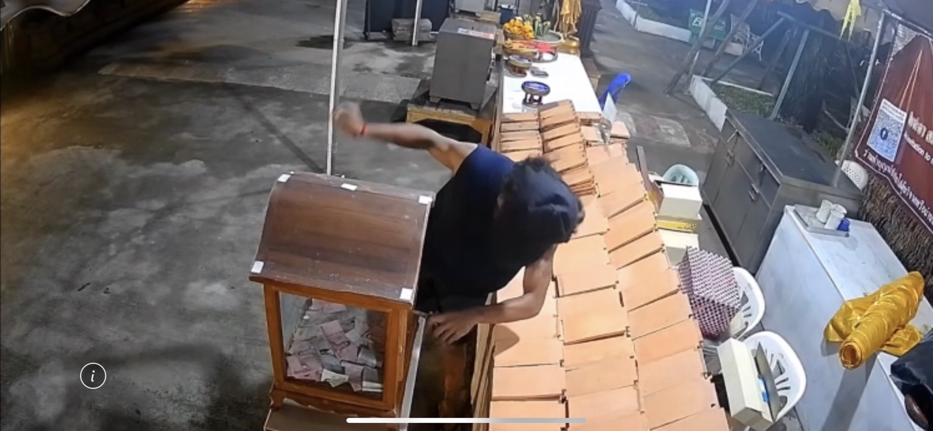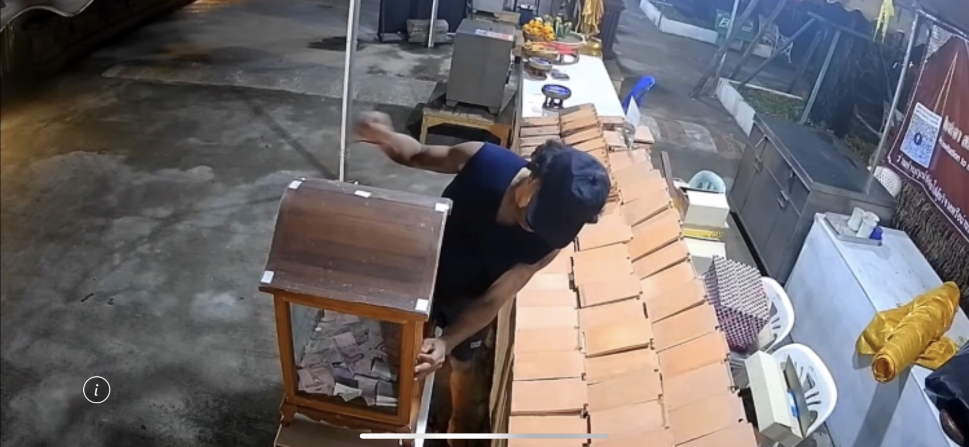 ทั้งนี้สืบเนื่องจากเมื่อวันที่ 2 มิถุนายน 2566 เวลา 08.00 น.ที่ผ่านมา ทางตำรวจท้องที่ สภ เมืองเชียงใหม่ ได้รับแจ้งเหตุ ขโมยตู้บริจาควัดเจดีย์หลวง ทางเจ้าหน้าได้เข้าตรวจสอบพื้นที่พบตู้บริจาคของวัดถูกยกนำไปทุบบริเวณโรงเพาะชำโรงเรียนเมตตาศึกษา และเจ้าหน้าที่ได้เข้าตรวจสอบ CCTV ร่วมกับทางวัดพบคนร้ายเป็นชาย 1 นายอายุประมาณ 25 ถึง 30 ปี เดินเท้าเข้ามาภายในวัดจากประตูทางทิศใต้ที่เปิดไว้อำนวยความสะดวกให้กับคนขับรถพระเถระร่วมงานยกช่อฟ้าเข้ามาบริเวณเต็นท์ทำบุญข้างวิหารหลวงช่วงเวลา 20:58 น. ของคืนวันที่ 31 พฤษภาคม 2566 ที่ผ่านมา คนร้ายได้ทำการยกตู้บริจาคเดินเท้าผ่านหออินทขีลบริเวณทิศใต้พร้อมปีนกำแพงข้ามไปฝั่งเมตตาศึกษา