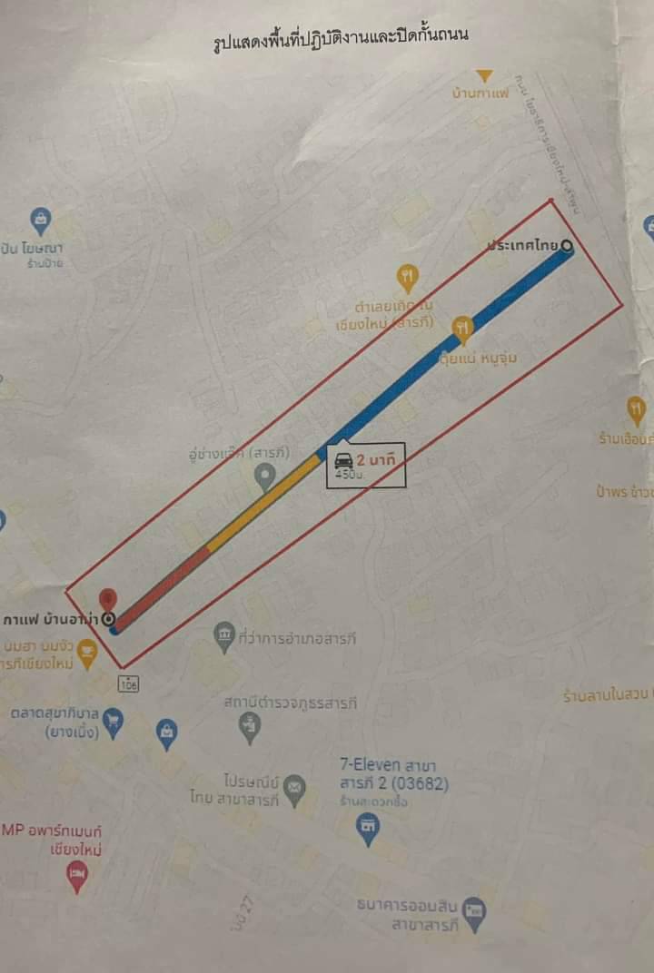 ด้วย การไฟฟ้าส่วนภูมิภาคสาขาสารภีจะดำเนินการปรับปรุงซ่อมแซมเสาไฟฟ้าแรงสูงที่ชำรุด ในวันพฤหัสบดีที่ 6 ก.ค. 66 ตั้งแต่เวลา 09.00 น. – 16.30 น. บริเวณร้านกาแฟเรียบราง ถึง แยกยางเนิ้งนั้น ทำให้ต้องปิดการจราจรเส้นทาง จึงแจ้งให้ประชาชนผู้ใช้รถใช้ถนนหลีกเลี่ยงเส้นทาง ตามวันและเวลาดังกล่าว