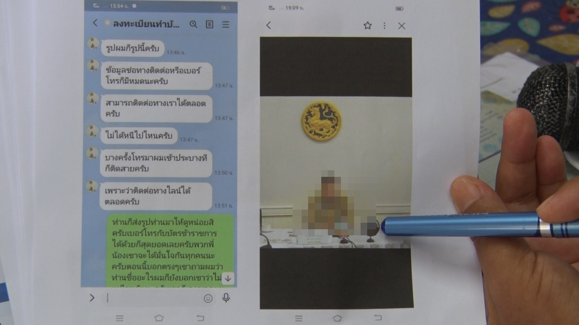 ด้านนายจง นามสมมุติ เปิดเผยว่าก่อนหน้านี้ได้รับการติดต่อจากนายเจ่า นามสมมุติ หลังนายเจ่าได้รับการติดต่อจากขบวนการทำบัตรประจำตัวประชาชนปลอม อ้างว่าเป็นปลัดกระทรวงมหาดไทย ทั้งส่งรูปถ่ายยืนยันว่าเป็นปลัดกระทรวงมหาดไทย ว่าสามารถซิกแซกทำบัตรประชาชนให้กับกลุ่มไม่มีสถานะทางทะเบียน สามารถทำบัตรประจำตัวประชาชนได้ แต่ต้องมีการลงทะเบียน โดยมีการโอนค่าลงทะเบียนทำบัตรประจำตัวประชาชนรายล่ะ 5 พันบาท และเป็นค่าดำเนินการทำบัตรประชาชน 2 หมื่นบาท ค่าดำเนินการสำหรับเจ้าหน้าที่อีก 5 พันบาท ซึ่งมีการส่งรูปบัตรประจำตัวประชาชน แนบกับ ทร 14 เหยื่อทั้ง 16 ราย ส่งให้เหยื่อเพื่อยืนยัน โดยให้เหยื่อทั้ง 16 รายโอนเงินค่าปลดล็อกหมายเลข 13 หลักอีกรายล่ะ 3 พันบาท แต่ตนเกิดความสงสัย จึงส่งรูปบัตรประจำตัวประชาชนและ ทร.14 ไปตรวจสอบ พบว่าไม่มีสถานะทางทะเบียน จึงนำเอกสารทั้งหมดมาร้องเรียนต่อหัวหน้าศูนย์บริหารการทะเบียนภาค 5 นอกจากนี้ยังมีเหยื่อที่ถูกหลอกจ่ายเงินค่าลงทะเบียนรายล่ะ 5 พันบาท อีก 7 ราย รวมเหยื่อที่ถูกหลอกทั้งหมด 23 ราย รวมเป็นเงิน 515,000 บาท