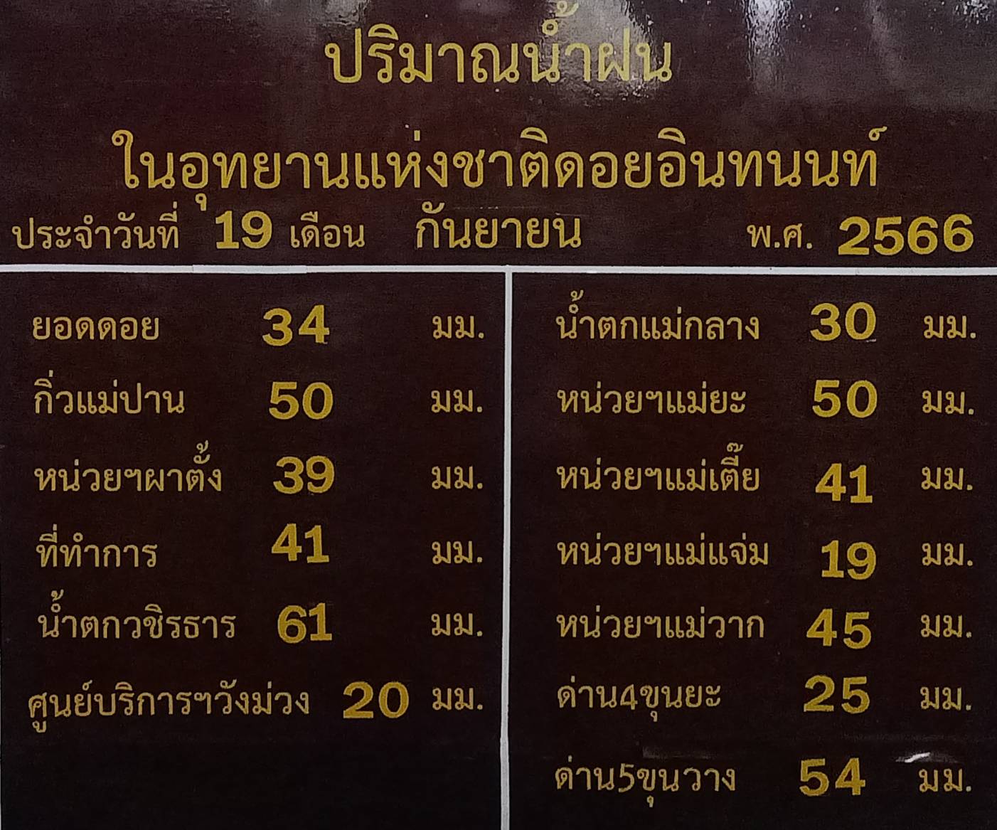 วันที่ 19 ก.ย.66 นายเกรียงไกร ไชยพิเศษ หัวหน้าอุทยานแห่งชาติดอยอินทนนท์ ได้แจ้งว่า เนื่องจากบนดอยอินทนนท์ยังคงมีฝนตกลงมาต่อเนื่อง แม้ว่าจะตกน้อยกว่า 2 วันก่อน แต่ก็ยังคงทำให้มีปริมาณมวลน้ำไหลลงสู่น้ำตกแม่กลางไหลเชี่ยวแรงมาก ดังนั้นขอแจ้งเตือนนักท่องเที่ยว ห้ามลงเล่นน้ำโดยเด็ดขาด