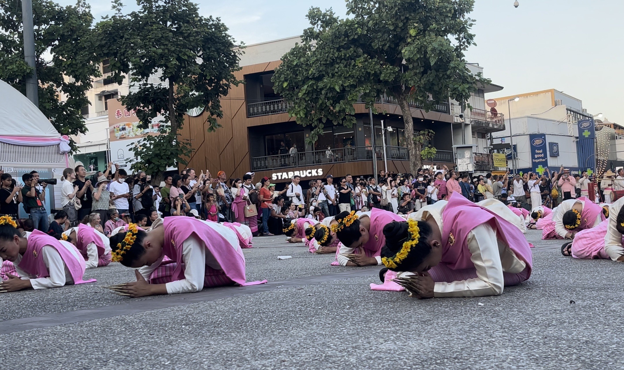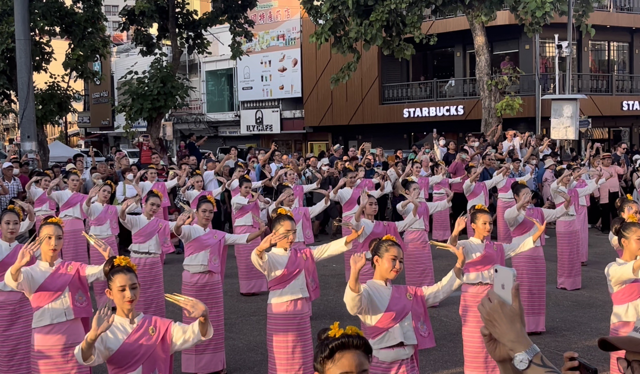 โดยตั้งแต่ช่วงเวลา 16.00 น. ขบวนช่างฟ้อน ต่างพร้อมใจกันตั้งขบวนด้วยความสวยงาม ในสภาพอากาศที่ในวันนี้ท้องฟ้าแจ่งใส ท่ามกลางสายตาประชาชนและนักท่องเที่ยวที่ให้ความสนใจ เดินทางเข้ามารอชมการแสดงกันเป็นจำนวนมาก จนในช่วงเวลาประมาณ 17.39 น. ขบวนช่างฟ้อน ได้เริ่มการแสดงฟ้อนรำอย่างสวยงามตระการตา และพร้อมเพรียงกัน สร้างความตื่นตาตื่นใจให้กับนักท่องเที่ยวที่พบเห็น