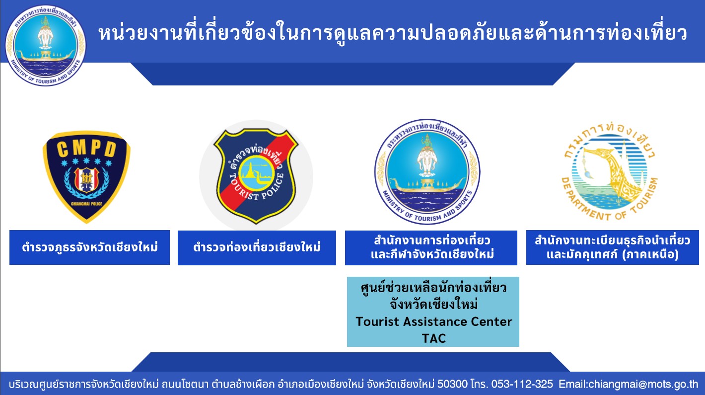 เมื่อวันที่ 3 ต.ค.2566 ว่าที่ร้อยเอกสันติพงศ์ บุลยเลิศ ท่องเที่ยวและกีฬาจังหวัดเชียงใหม่ เปิดเผยในการแถลงข่าวสื่อมวลชนประจำสัปดาห์จังหวัดเชียงใหม่ ถึงการอำนวยความสะดวกและความปลอดภัยแก่นักท่องเที่ยวช่วงฤดูการท่องเที่ยว โดยระบุว่า จังหวัดเชียงใหม่ได้บูรณาการร่วมกับหน่วยงานที่เกี่ยวข้อง ได้แก่ ตำรวจภูธรจังหวัดฯ ตำรวจท่องเที่ยวจังหวัดฯ และสำนักงานทะเบียนธุรกิจนำเที่ยวและมัคคุเทศก์ (ภาคเหนือ) ในการจัดตั้งศูนย์ช่วยเหลือนักท่องเที่ยวทั้งหมด 3 จุด คือ ศูนย์ช่วยเหลือนักท่องเที่ยวจังหวัดเชียงใหม่ ภายในท่าอากาศยานเชียงใหม่ ฝั่งอาคารระหว่างประเทศ ซึ่งเปิดให้บริการทุกวัน
