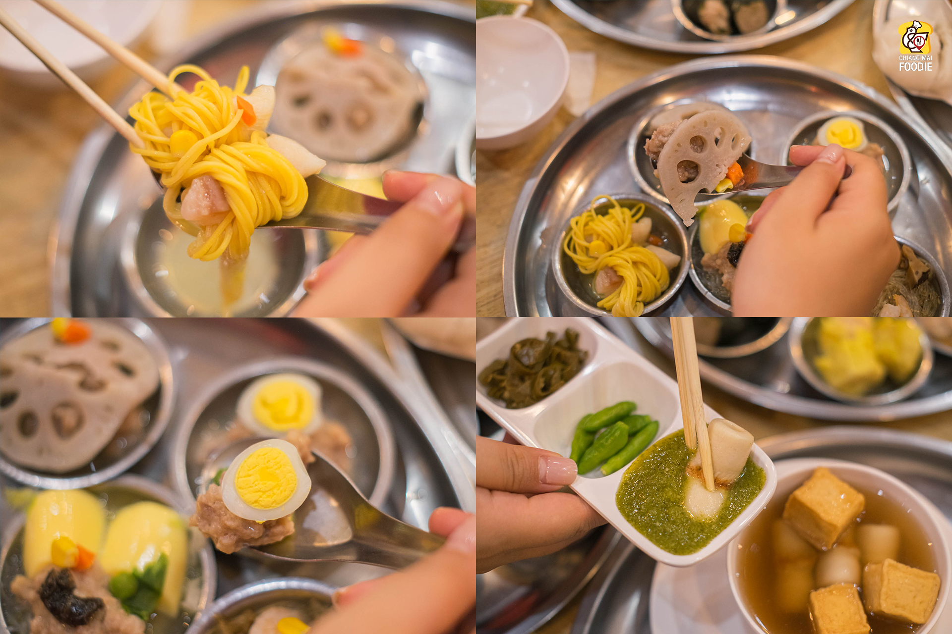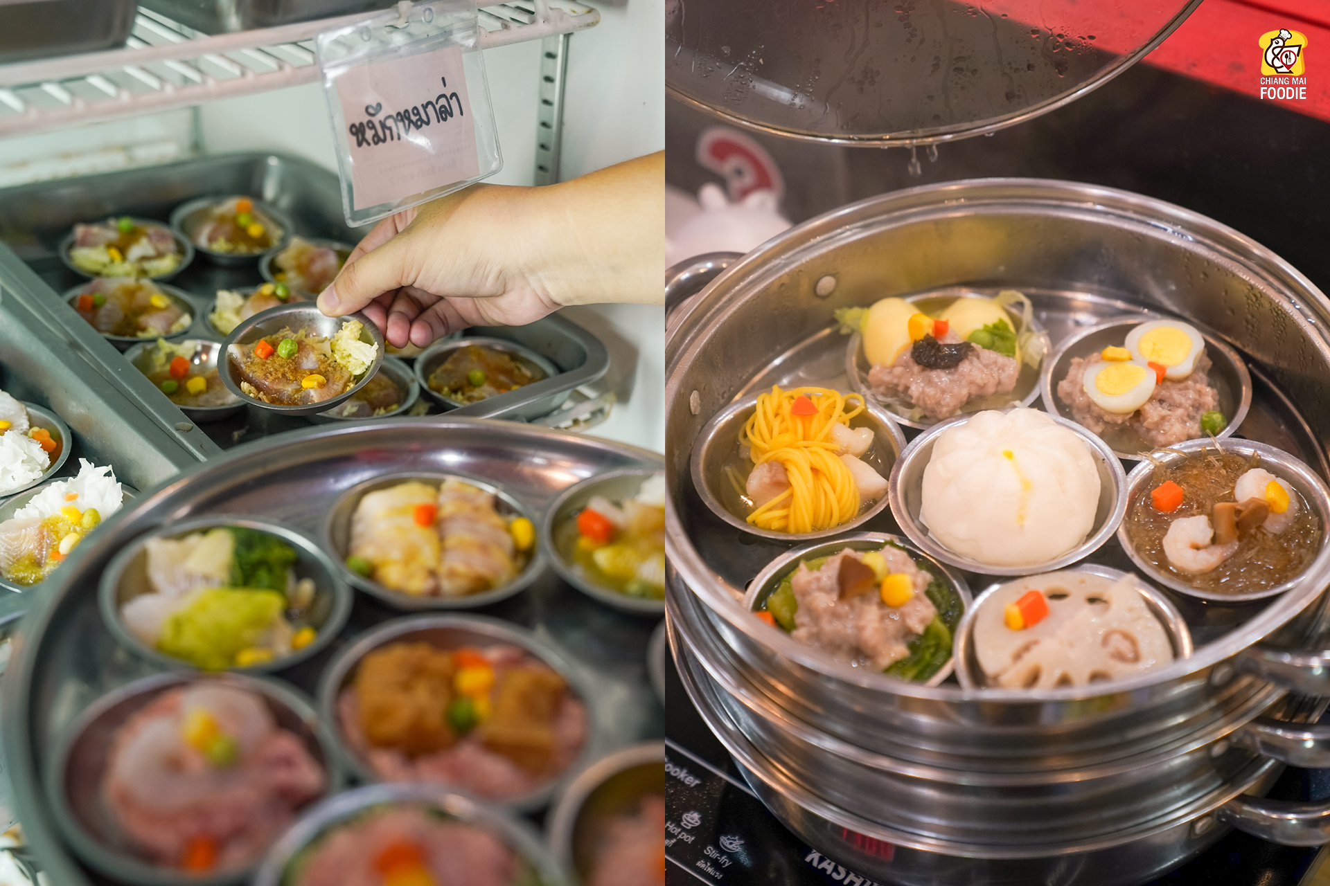 อาหารก็มีหลากหลาย ไม่เฉพาะติ่มซำที่นำมานึ่ง พวกของทอดอย่างซาลาเปา ปอเปี๊ยะ เกี๊ยวซ่า นักเกต ซุปไก่สมุนไพร กระเพาะปลา โอเด้ง