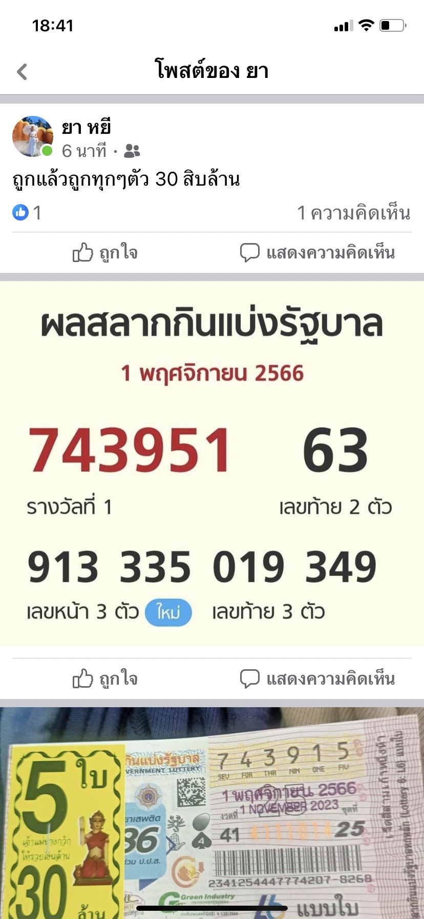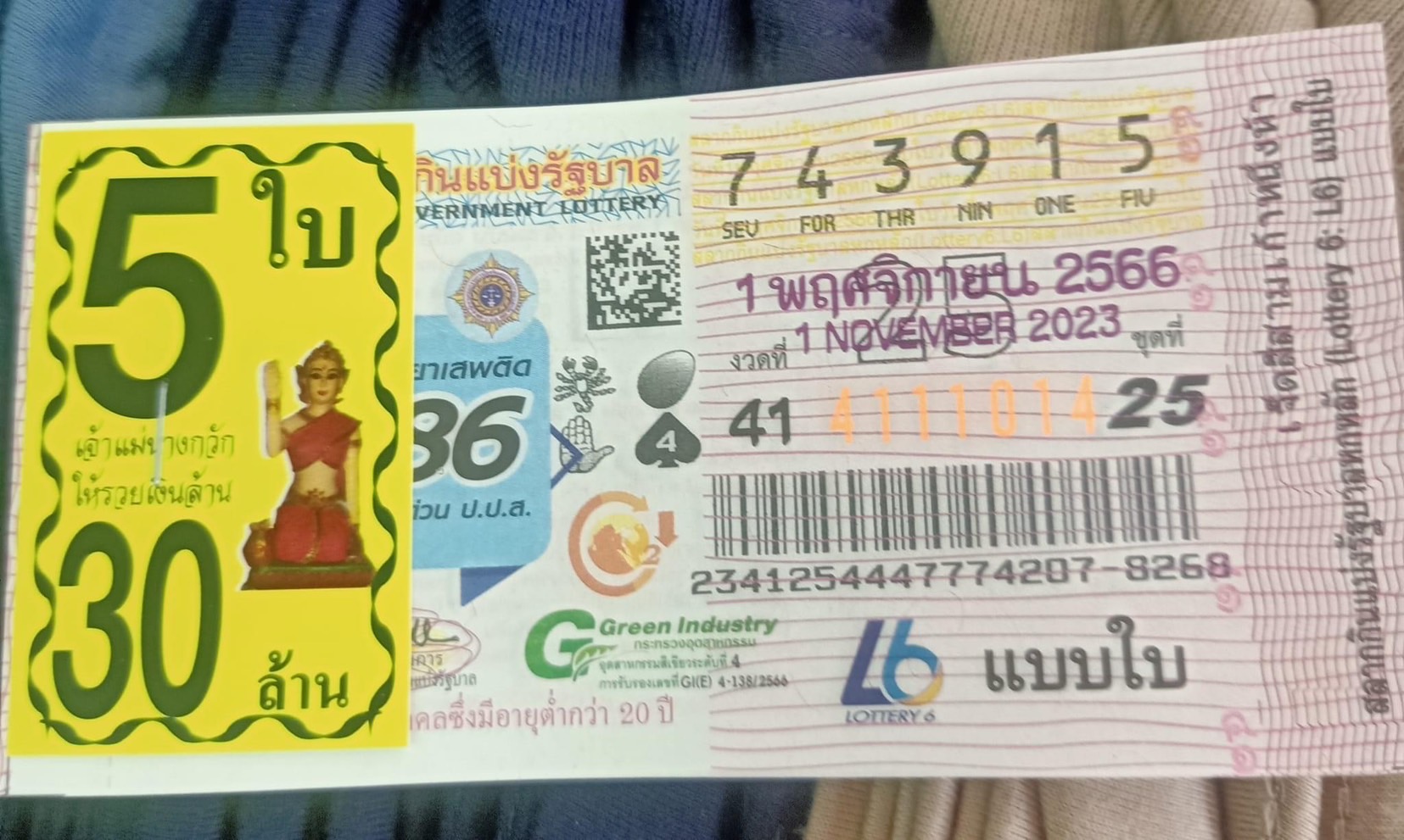 เมื่อวันที่ 1 พ.ย.2566 เป็นวันออกสลากกินแบ่งรัฐบาล รางวัลที่ 1 ออกหมายเลข 743951 เป็นที่ฮือฮาในกลุ่มพ่อค้าแม่ค้าในตลาดวโรรส หรือ กาดหลวง อ.เมืองเชียงใหม่ คือมีพ่อค้าเสื้อผ้าชื่อหนุ่มโจ้ วัย 30 กว่าปีชาว อ.ดอยเต่า จ.เชียงใหม่ พร้อมกับสลากกินแบ่งรัฐบาล ชุดใหญ่ จำนวน 5 ใบ หมายเลข 743915 นำออกมาโชว์ ชวดถูกรางวัลที่ 1 ไปเฉียดฉิว เพียงเลขท้ายกลับกันเท่านั้น ในสภาพที่ยังตื่นเต้นไม่หาย