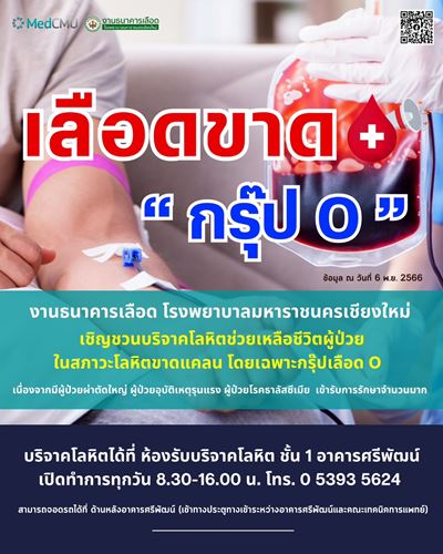 เนื่องจากมีผู้ป่วยผ่าตัดใหญ่ ผู้ป่วยอุบัติเหตุรุนแรง ผู้ป่วยภาวะซีด กรุ๊ป O เข้ารับการรักษาจำนวนมาก