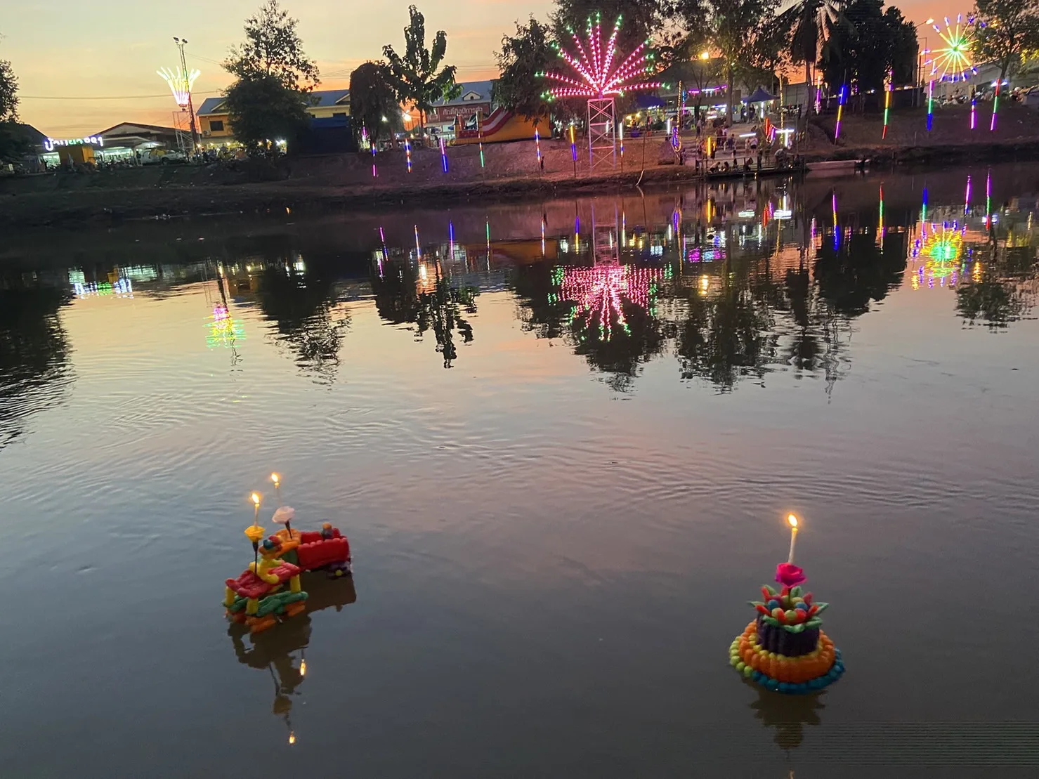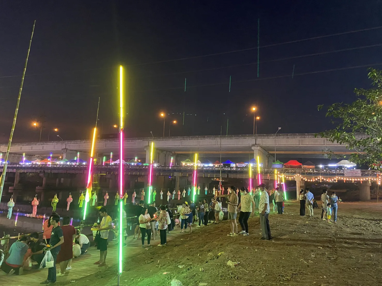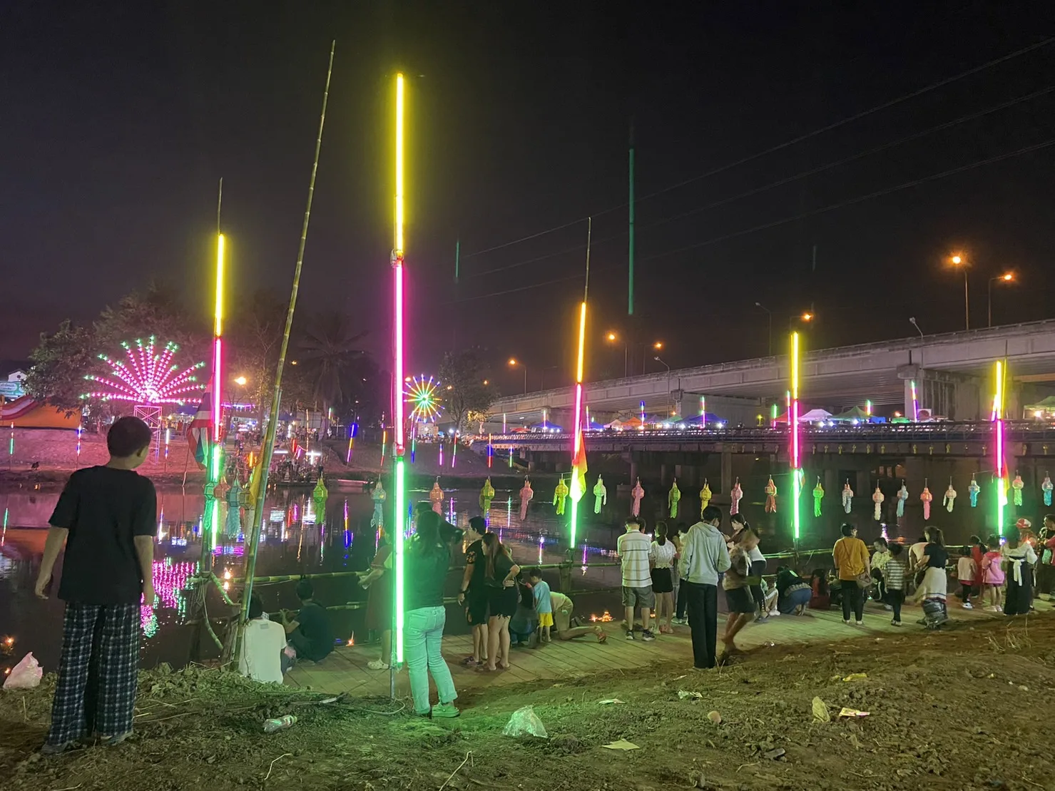เมื่อหัวค่ำวันที่ 26 พ.ย.2566 ที่ท่าน้ำปิง วัดป่างิ้ว ต.ท่าวังตาล อ.สารภี จ.เชียงใหม่ และฝั่งตรงข้ามทาง ต.ป่าแดด อ.เมืองเชียงใหม่ มีการจัดเทศกาลลอยกระทง หรือ ประเพณียี่เป็ง ของชาวล้านนา พร้อมกันคนละฝั่งอม่น้ำปิง มีมหรสพดนตรีมาจัดแสดงทุกคืน ระหว่างวันที่ 26-28 พ.ย.2566 ประดับประดาด้วยแสงไฟฟ้าอย่างสวยงามและทางบรรดาพ่อค้าแม่ค้า นำสินค้าประ เภทอาหารและเครื่องดื่ม พร้อมด้วยกระทง เต็มสองฝั่งถนน รวมถึงบนสะพานข้ามน้ำปิง สิ่งที่ขาดเสียไม่ได้ตามประเพณียี่เป็งคือการุดประทัด-ดอกไม้ไฟ เสียงดังสนั่นตลอดเวลา