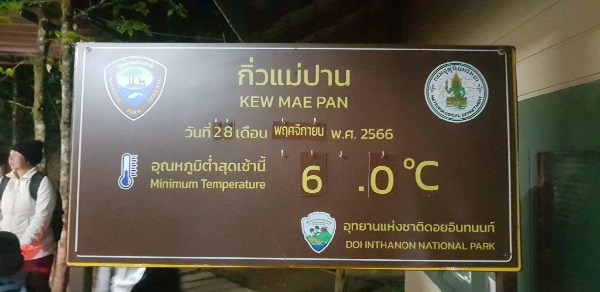 ทางด้านนักท่องเที่ยวรายหนึ่งกล่าวว่า อุณหภูมิเช้านี้บนยอดดอยหนาวมาก วัดได้ 6 องศาฯ ที่กิ่วแม่ปาน 6 องศาฯ และที่ทำการอุทยาน 11 องศาฯ นับว่าหนาวมาก และที่สำคัญ เกิดแม่คะนิ้งขึ้นที่ยอดดอย ตามยอดหญ้า และใบไม้ข้างทาง ขาวโพลนเต็มไปหมด นักท่องเที่ยวพากันตื่นเต้นเก็บภาพปรากฏการณ์ธรรมชาติไว้เป็นที่ระลึก เป็นสัญญาณว่าอากาศจากนี้ไปจะหนาวลงขึ้นเรื่อย ๆ